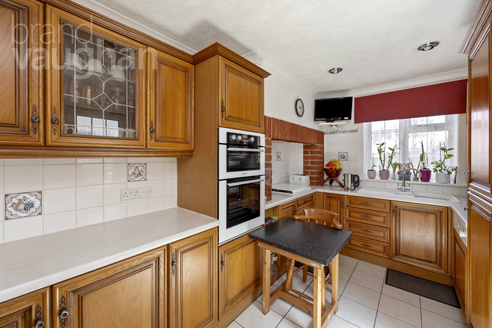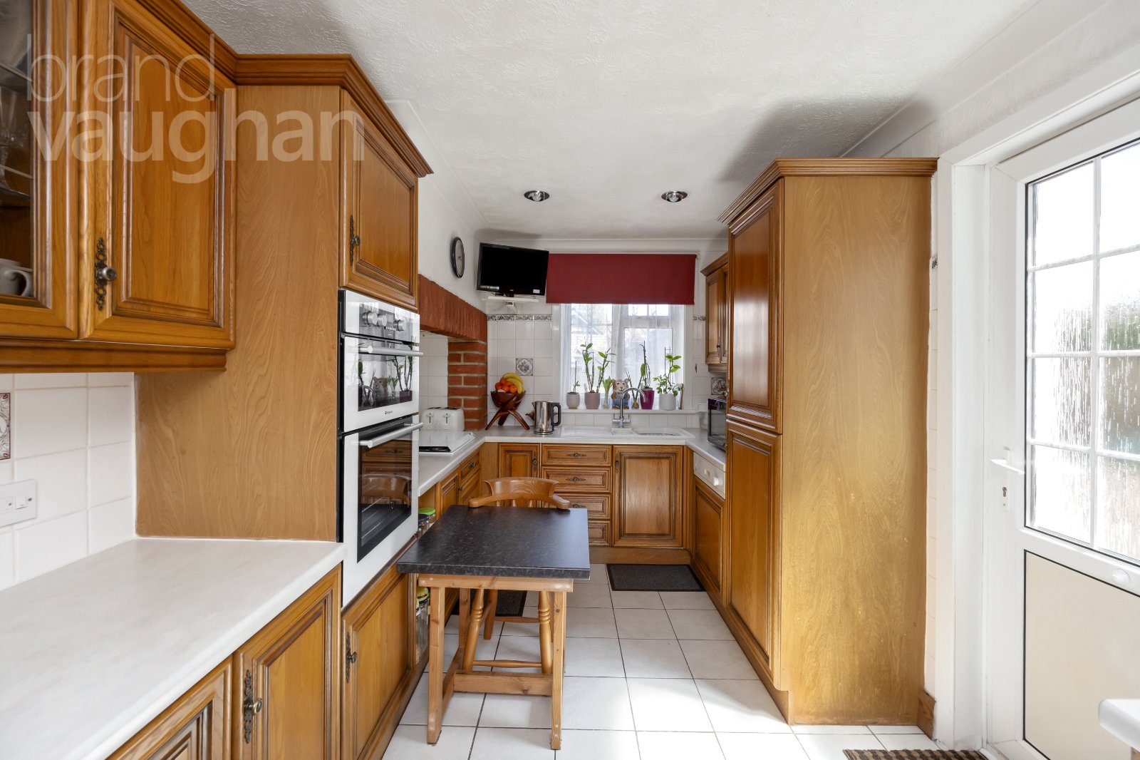 Well-designed with ample storage and integrated appliances to include a fridge freezer, oven, hob, dishwasher, the kitchen has a country-cottage feel with wood cabinetry in a traditional style. It is in fine condition and fully functional with a door leading out to the garden allowing the cool breeze to flow through or for taking meals outside to the garden for dining alfresco during warmer weather.