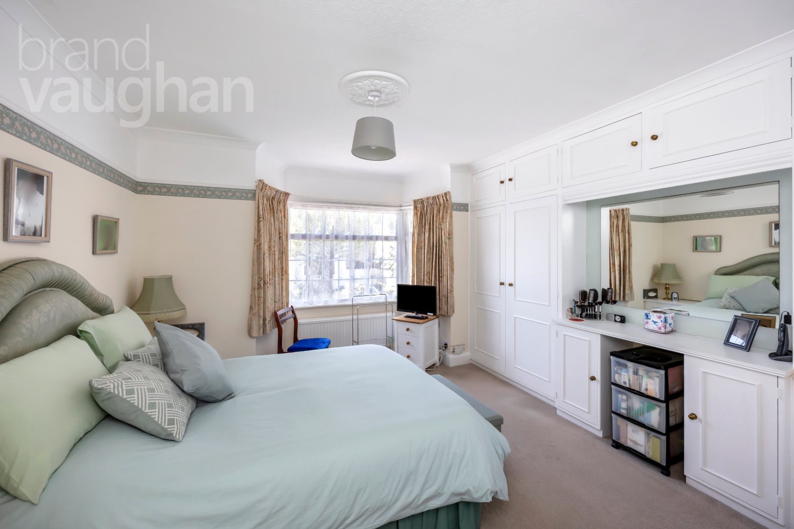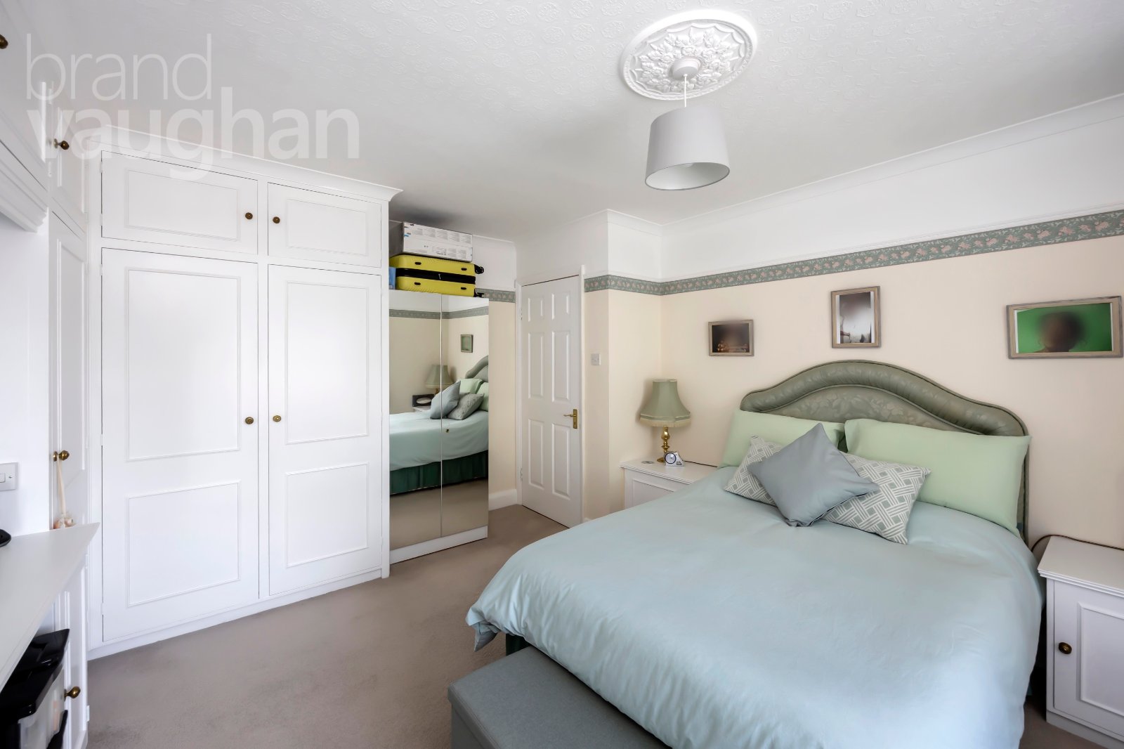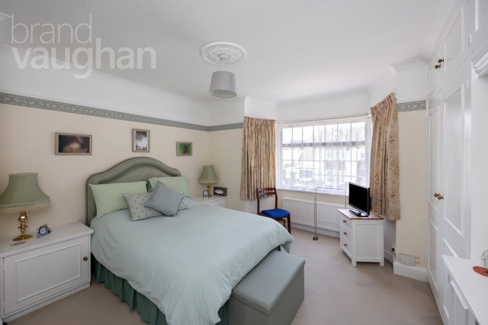 Up on the first floor you’ll find three comfortable double bedrooms, two of which mirror the main reception room below, while the third is smaller making it ideal as a home office. It does allow for a small double bed or sofa bed – so all three are double rooms. They each have soft carpet underfoot and double-glazed windows to ensure a warm and restful night’s sleep. Nearby, the bathroom is classic in white and dove-grey with a shower over the bath – and once again, has scope for reconfiguration and modernisation if desired