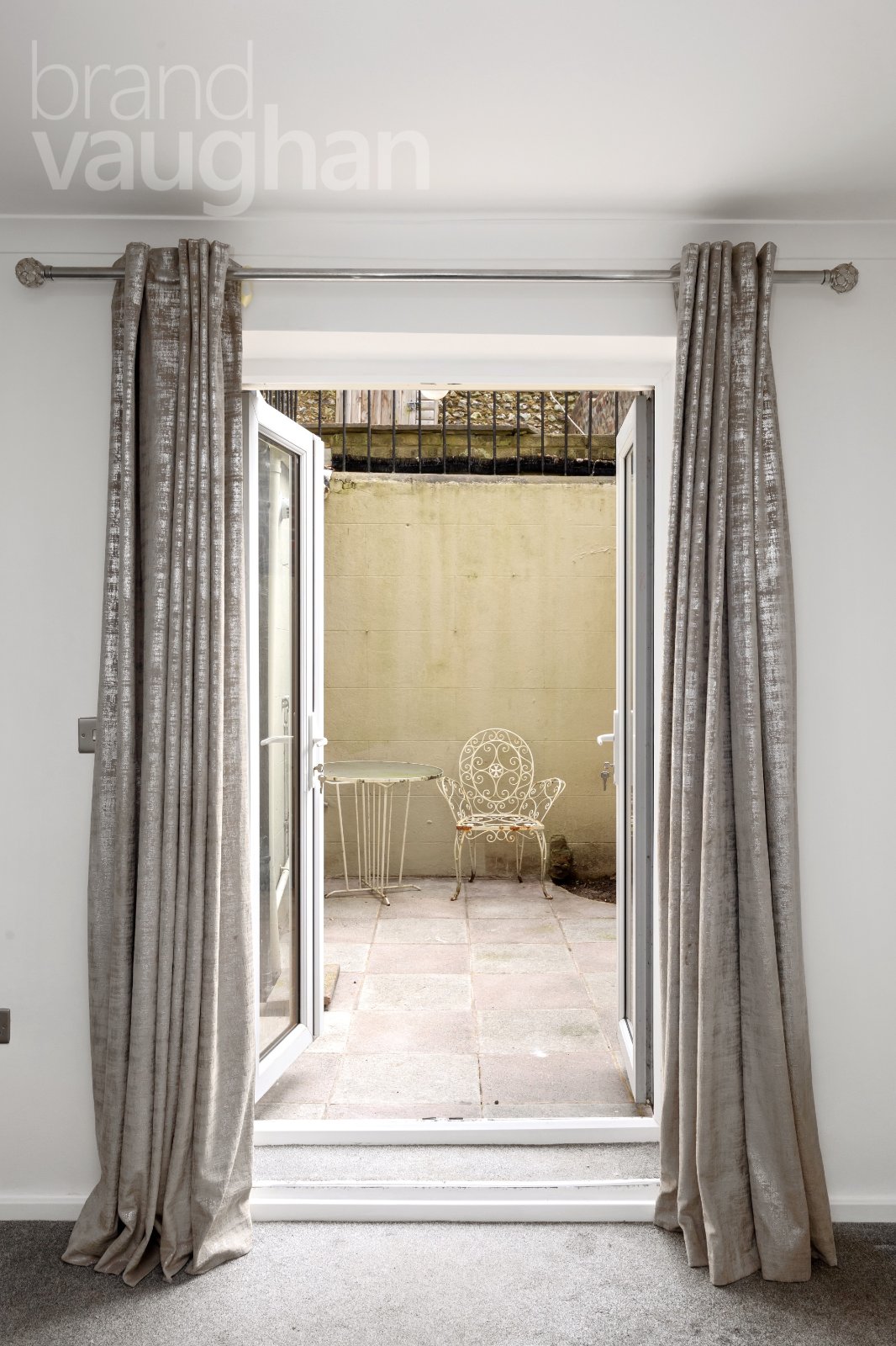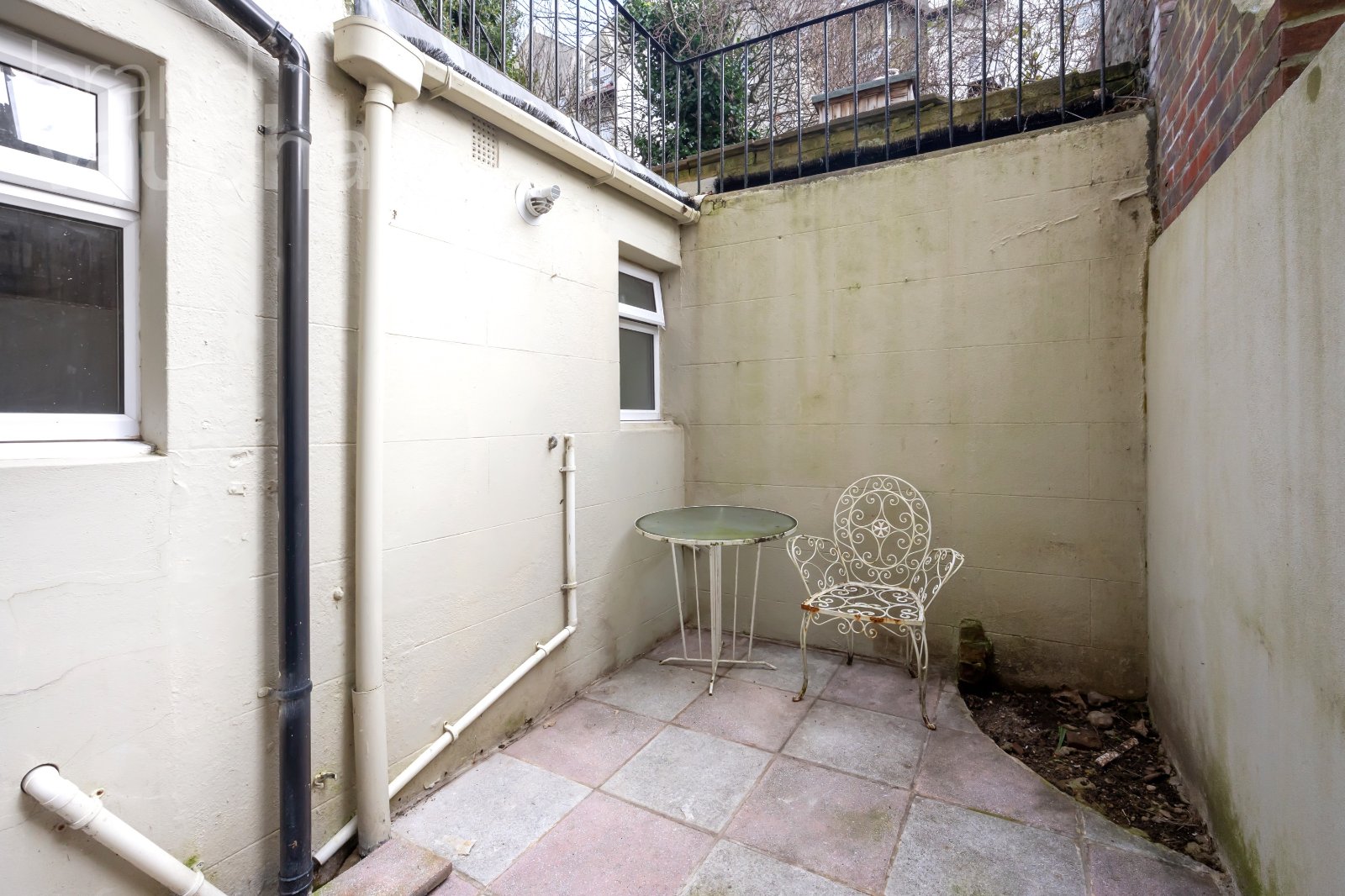 Outside: east facing courtyard patio