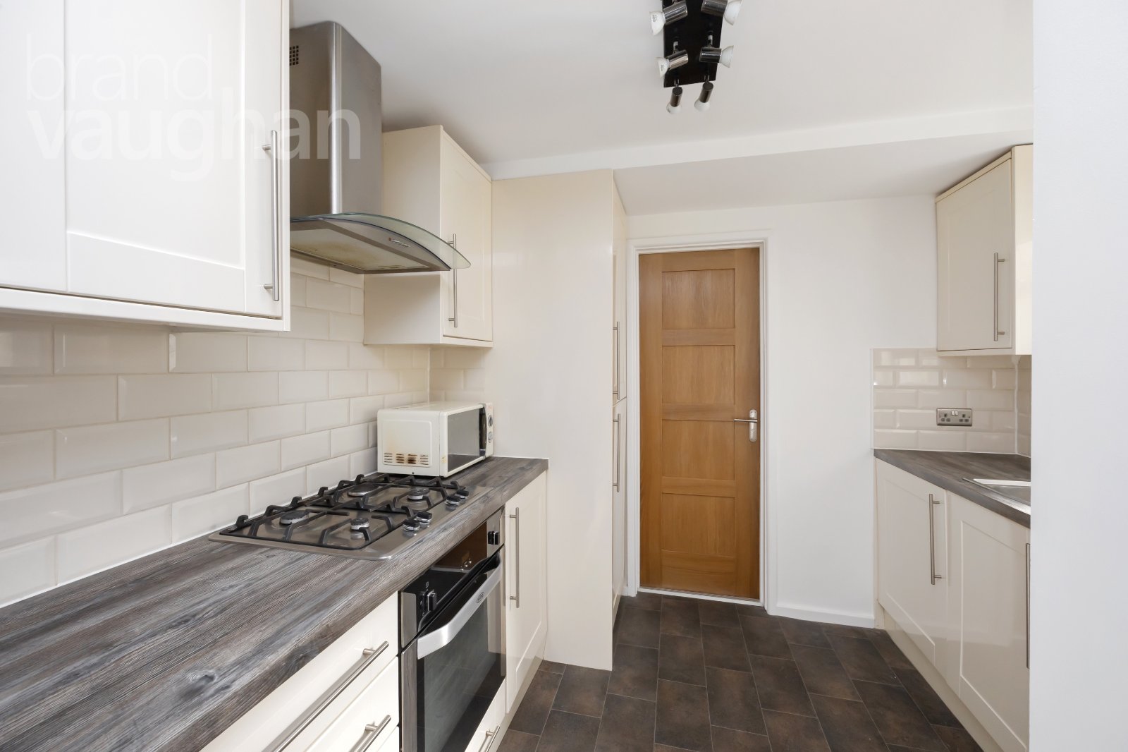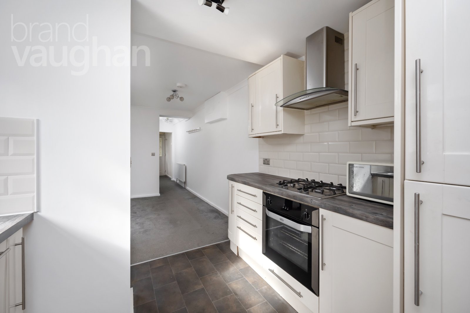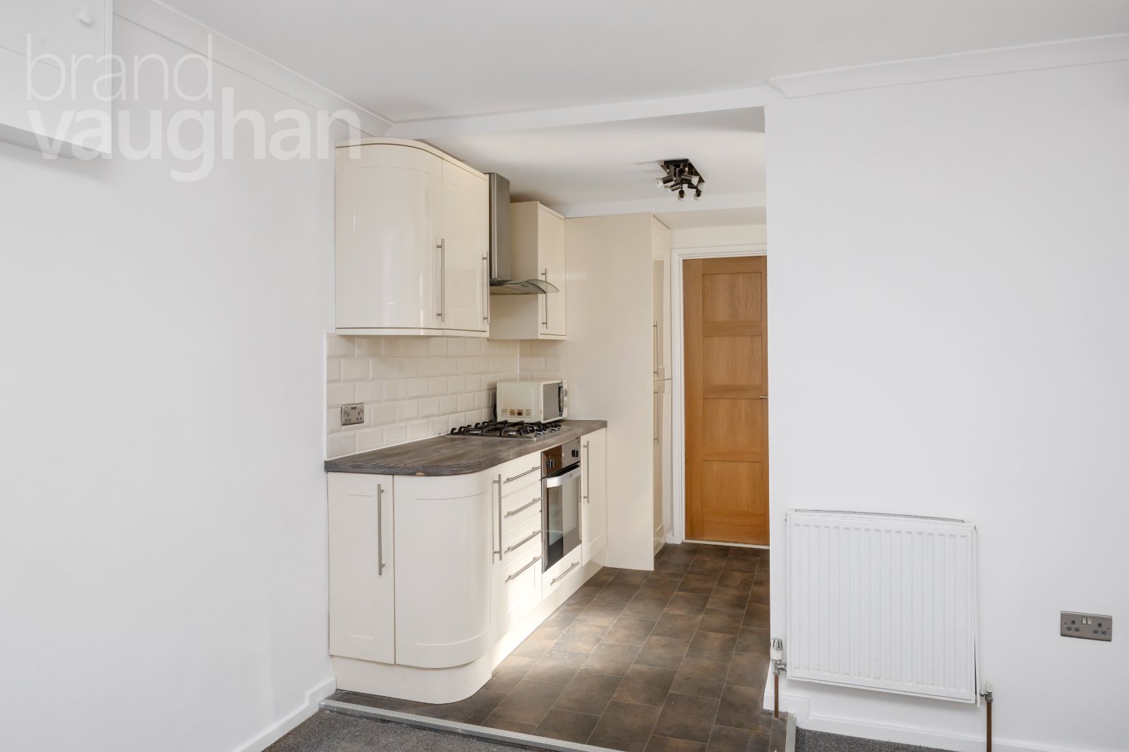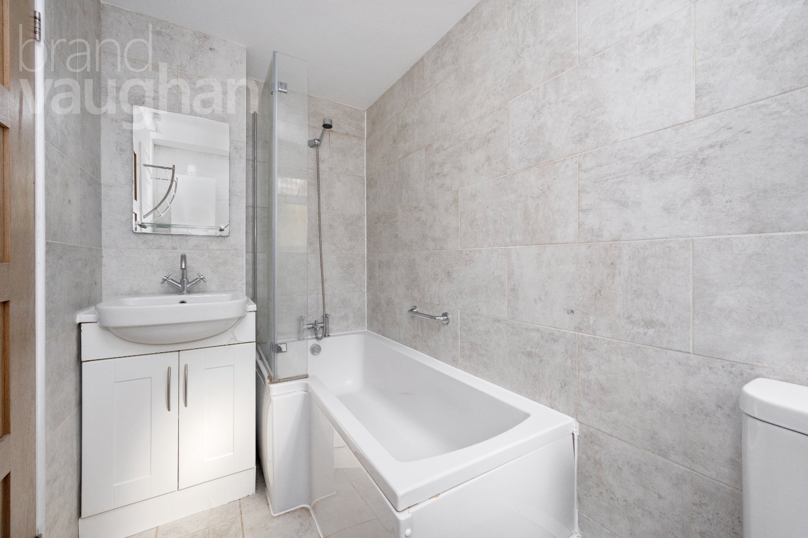 Adjoining the living room, the kitchen is a great size with modern cabinets and fully integrated appliances, so you can move straight in with relative ease. At the far end of the flat, the bathroom is fresh in white and grey with a shower over the bath.