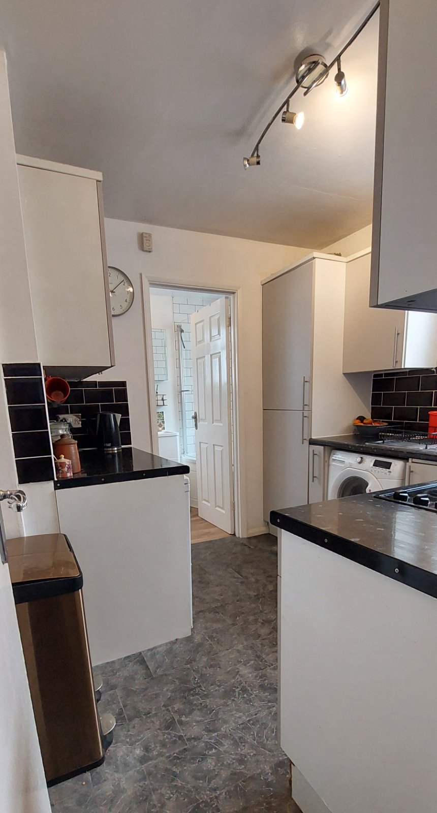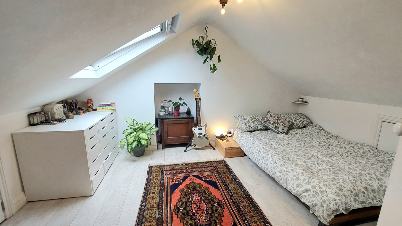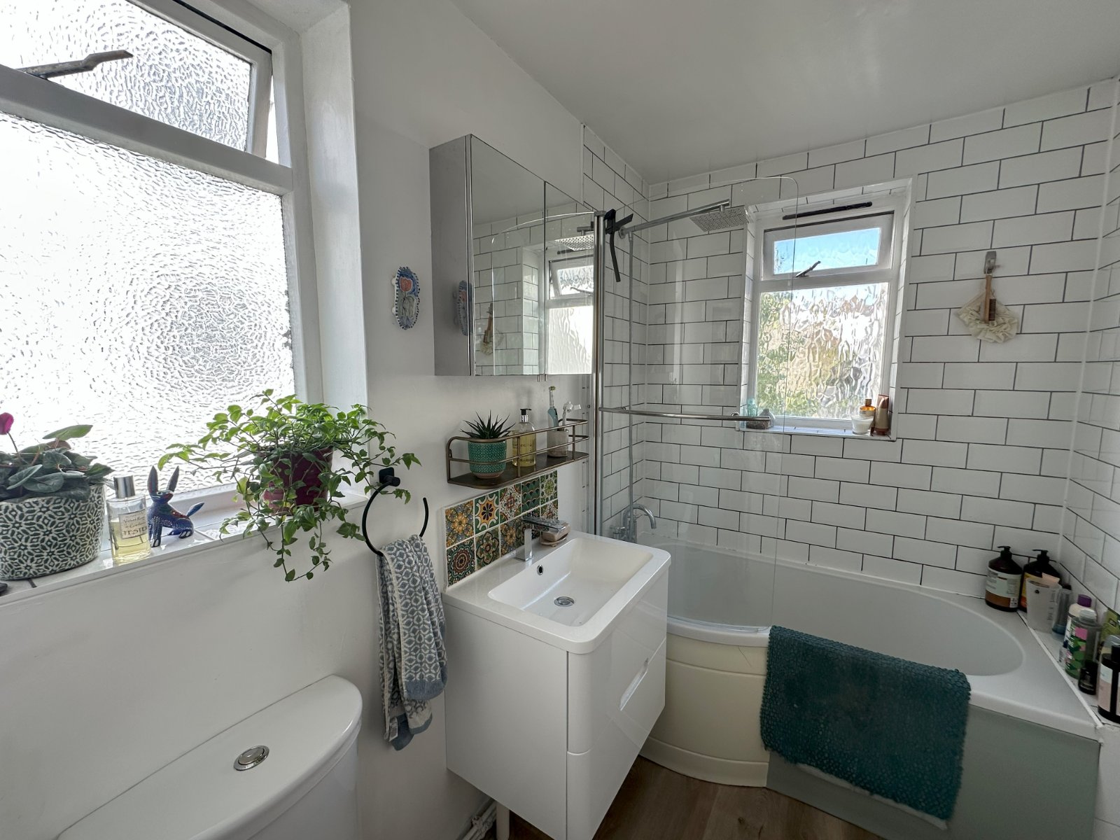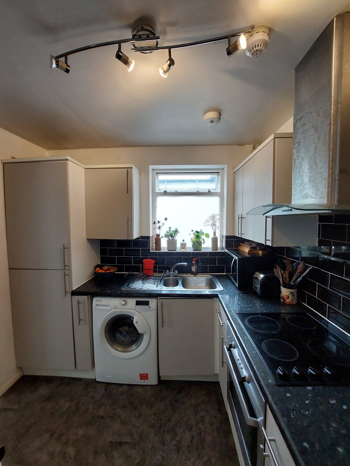 Zesty lemon and grey steps lead up to the new loft room which is another double room, meaning this property would be ideal for professional sharers who would find the location ideal – but also for families with one or two children as there is space for two single beds. There is also extra storage space within the eaves and an en suite WC has been added so no need for night time visits to the bathroom downstairs.