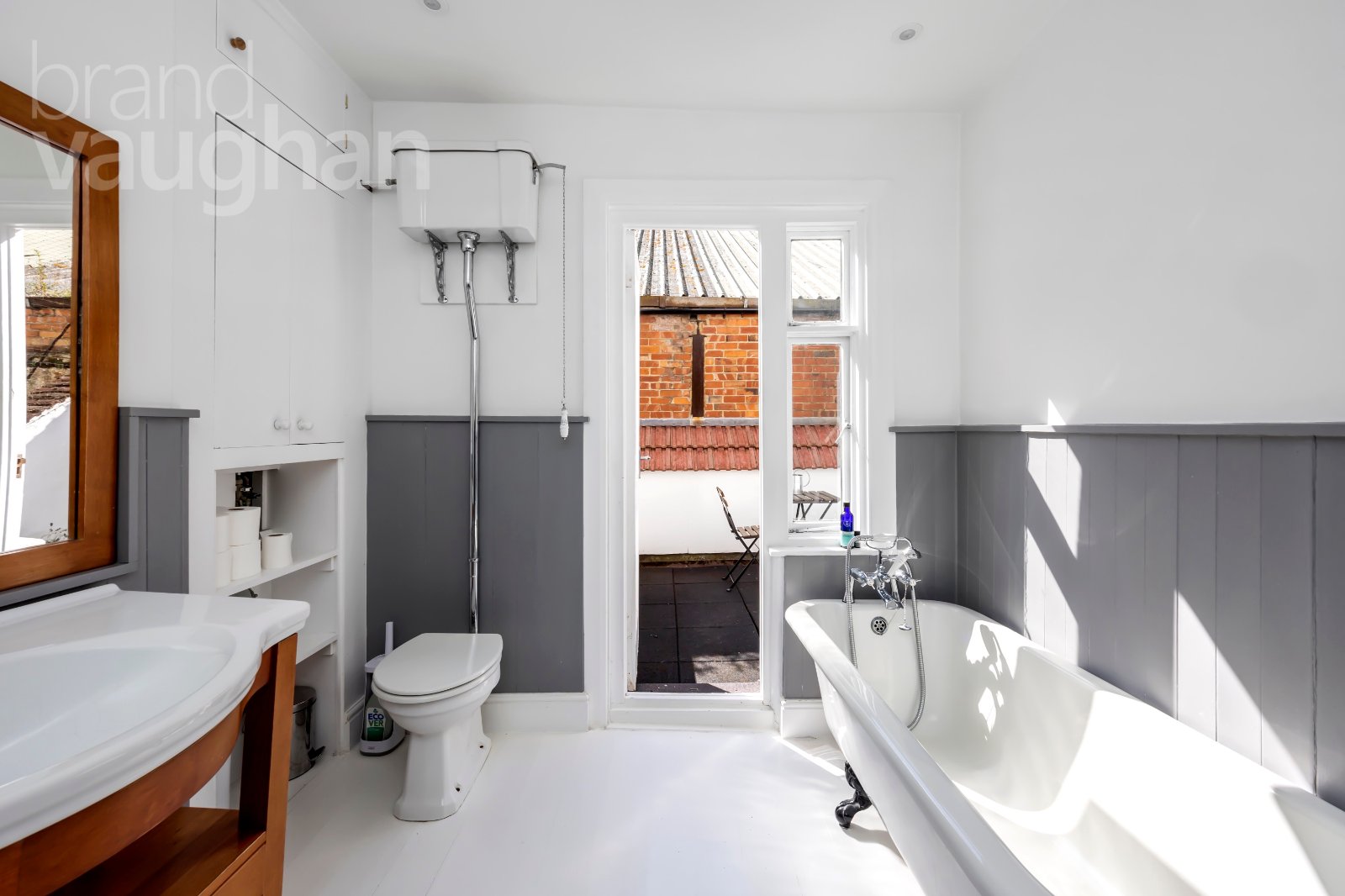 Slightly unconventional, but not unusual in these Victorian homes, the roof terrace is on the first floor to catch some sun and is reached via the bathroom. A secret haven open to the south with space for a table and chairs, planning has been granted to improve the property to the north side – and there are also ongoing discussions concerning the brick property at the back.
