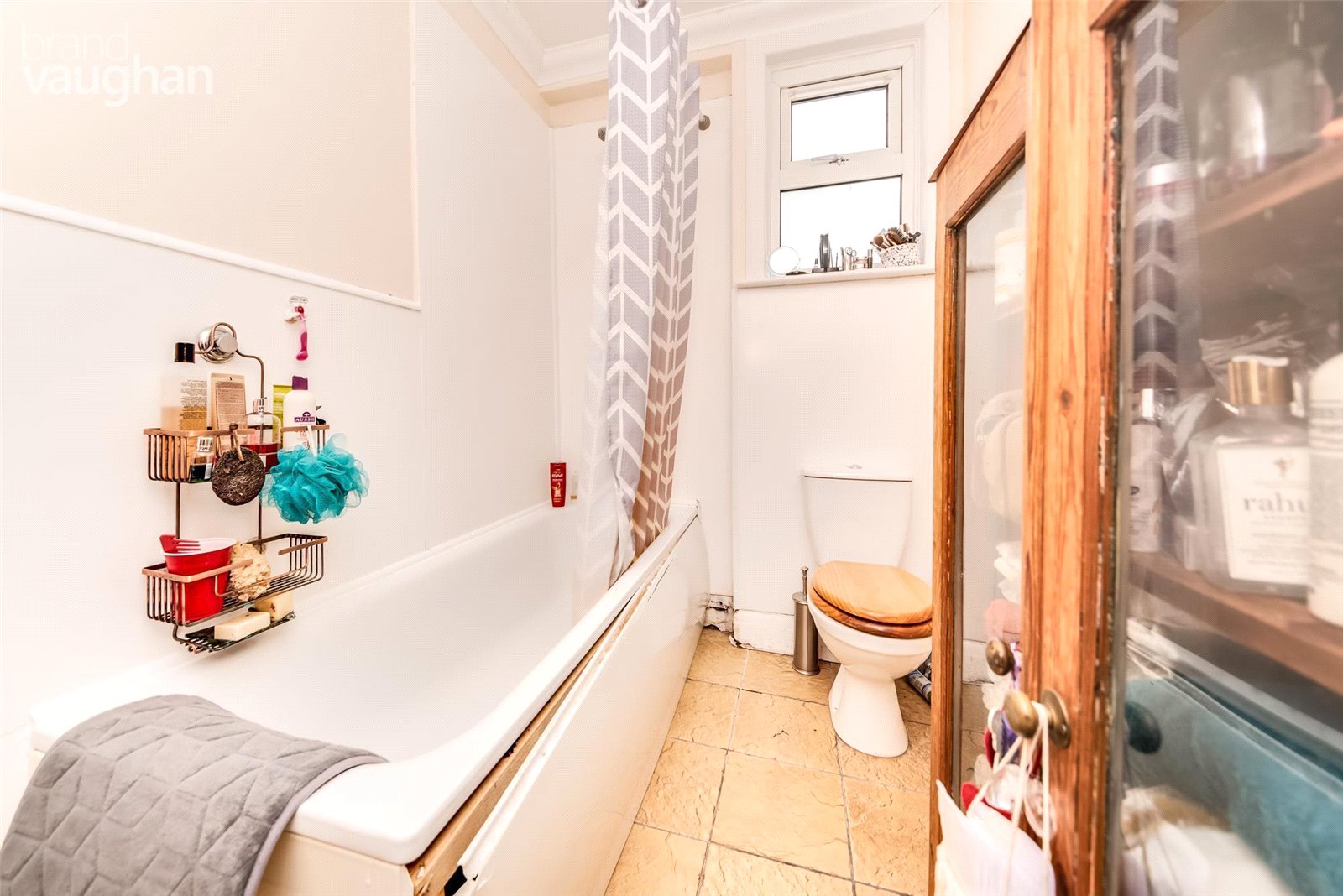 Inside, the kitchen is to your right, so dining outside is easy and it is bright and cheerful will plenty of fitted units and practical working surfaces. Classic in style, it has a sensible layout and integrated appliances include a gas hob and electric oven beneath a hood. Across the hallway, a modern bathroom is simple but stylish with a shower above the bath and soothing colour scheme, and close to the front door, it’s great for those who work unsociable hours or if you’re just back from a run in Quenn’s Park.