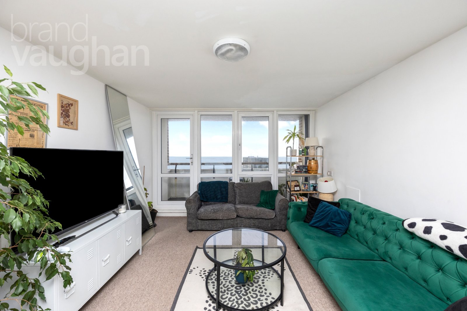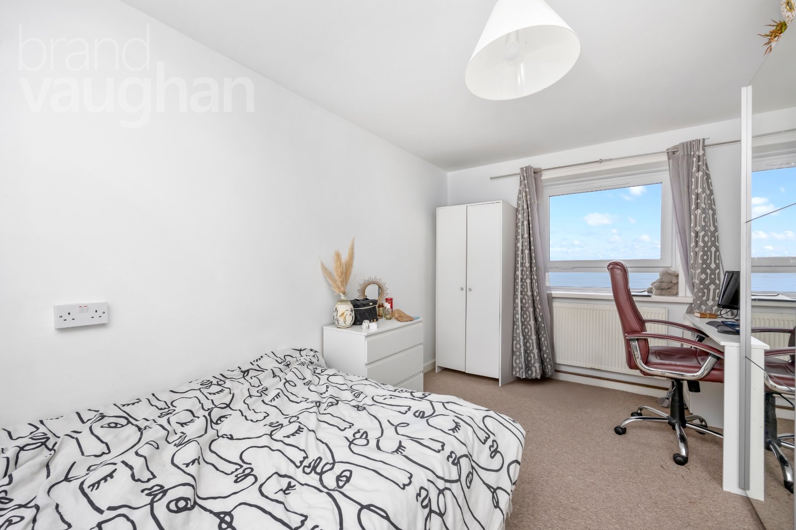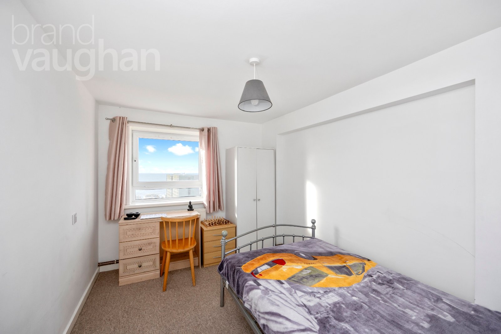 Both facing south for the Sussex sunshine and glorious views of the sea by day and the glitter of the city beneath at night, both bedrooms are generous doubles, great for sharers, and the modern bathroom is good to go with a contemporary dual heads shower above the bath, a vanity unit below the hand basin and a lit mirror above.