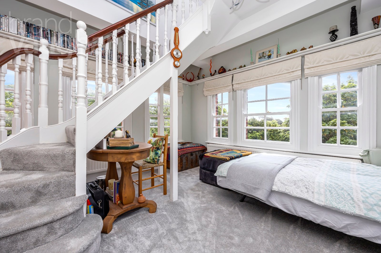 Up another flight of stairs and you come into the second bedroom which is a magical space which the current owners use as a guest bedroom and second reception room as the views continue to improve the further up the building you go.