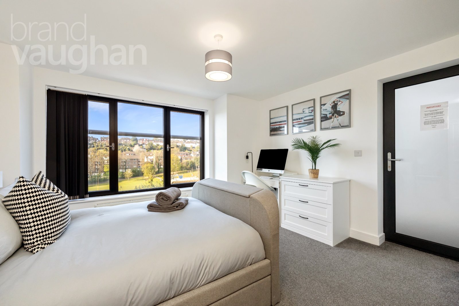 While these rooms are technically lower ground, they do not feel as such as they are open to the south with large picture windows framing far-reaching views. Natural light is able to stream in and the larger double room on this floor has ‘tilt-turn’ windows which open completely to a Juliet balcony so during summer they can be left open to allow the cool breeze to flow through. Bedroom two is another substantial double room, and both have access to chic en suite shower rooms with wet room rainfall showers and urban grey wall tiles around luxury white Duravit sanitaryware.