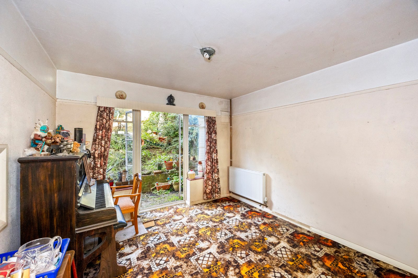 Outside, the big, sunny garden is a tranquil retreat, child and pet secure behind fencing with a broad long lawn and some mature shrubs and trees – so the bones of a sociable oasis to enjoy are there.