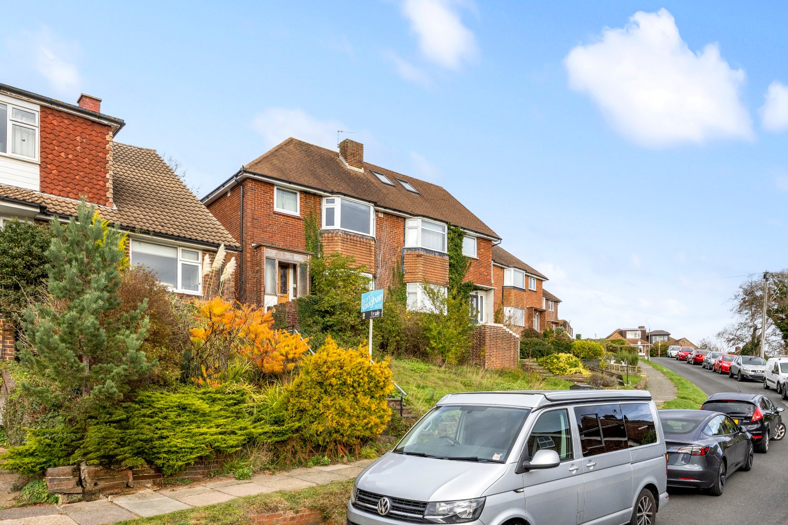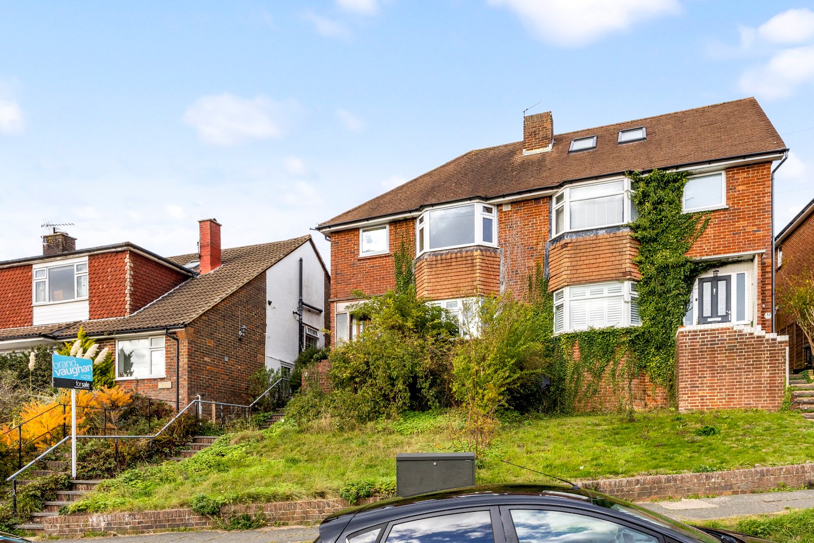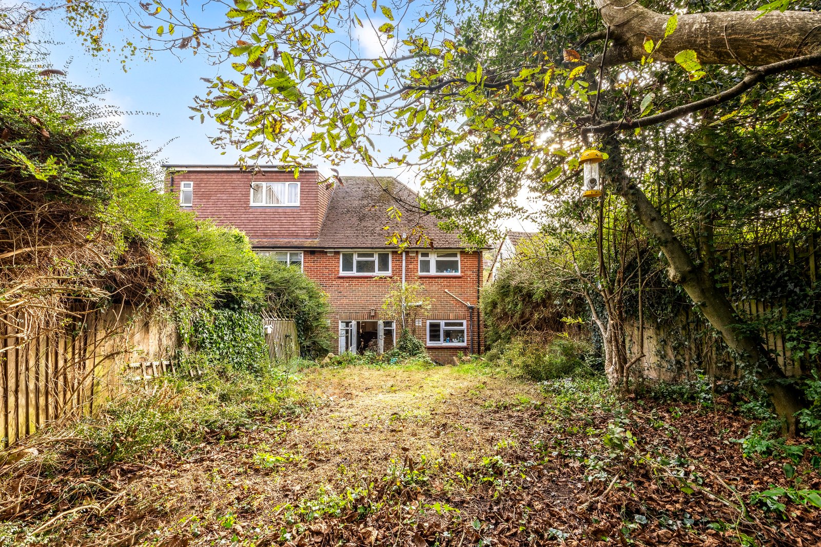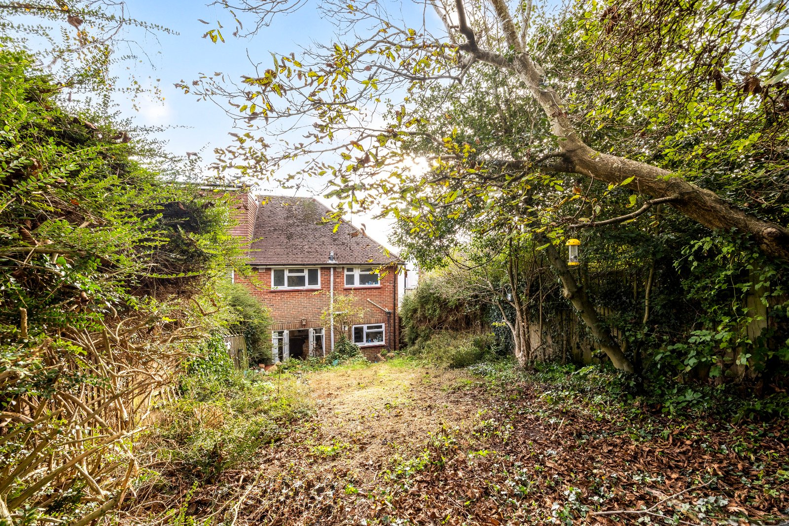 On a large plot, the private approach has stairs rising from the free street parking past a front garden with fabulous views over the green to the Westdene Woods nature reserve to the front door which is within a sheltering porch. Inside, this fantastic house is an inviting blank canvas for you to make your own – with double glazing already in place - and a rare find, it is not overlooked at the front or the back.