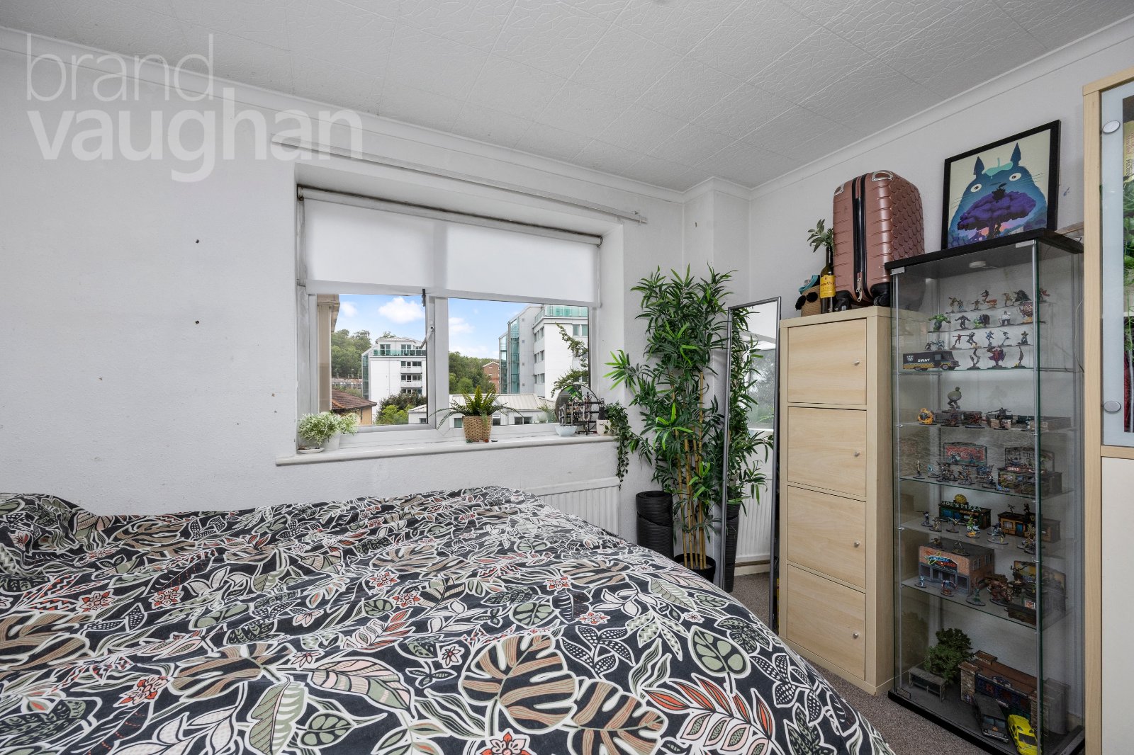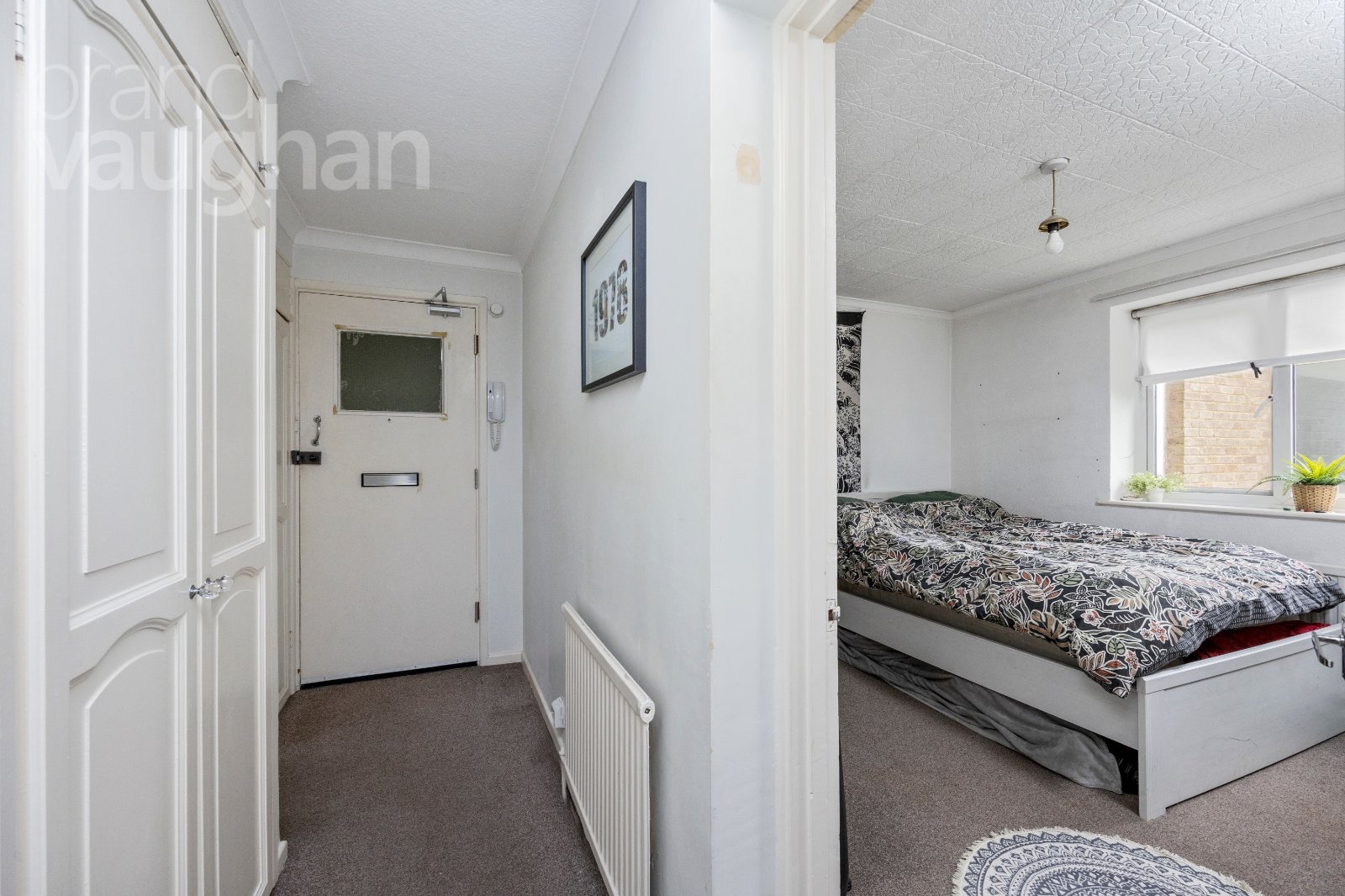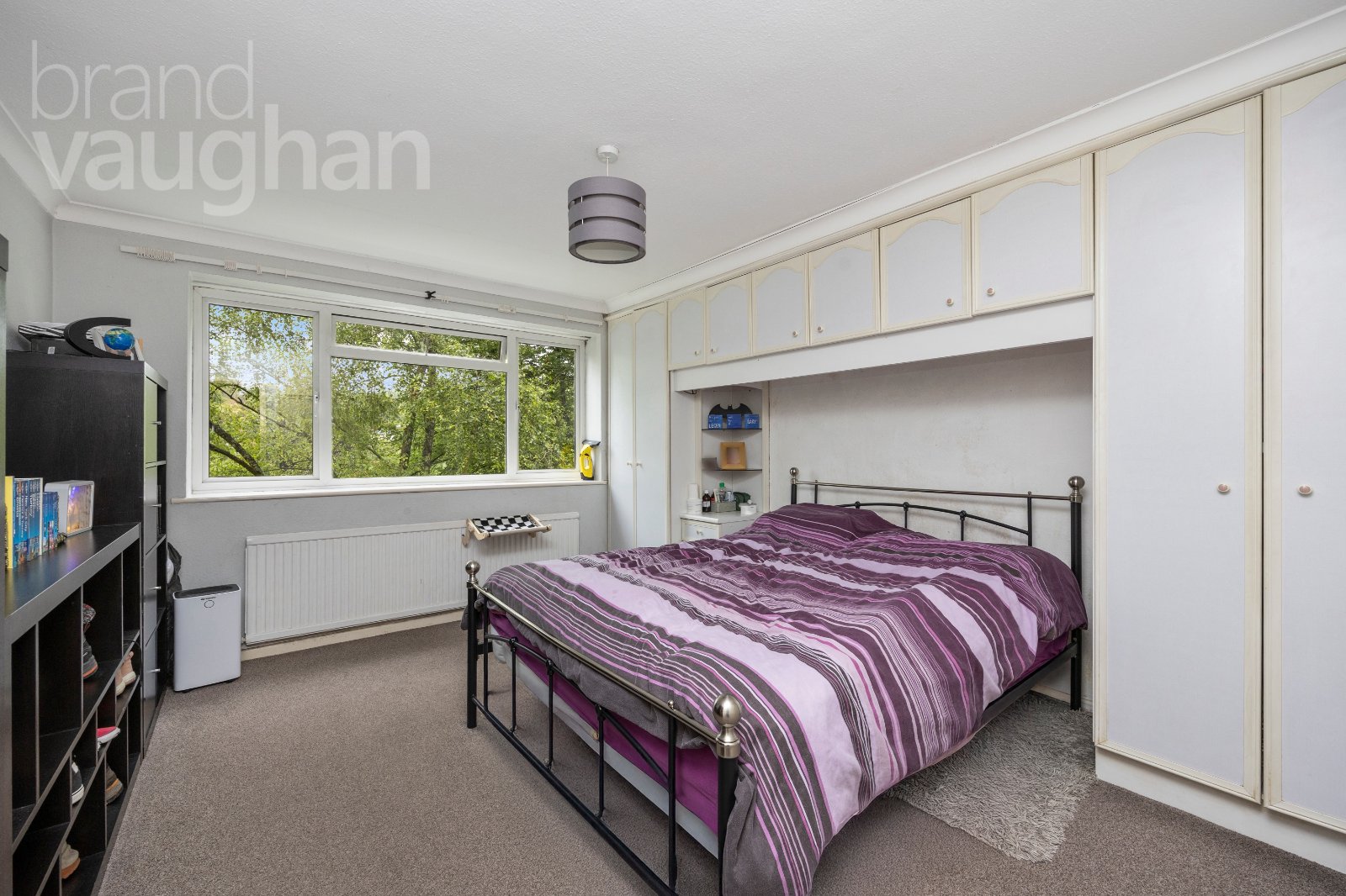 While it has clearly been well-maintained, there is potential to see the space as a blank canvas, ready to put your own stamp on. The decoration throughout is neutral with white walls and fawn-grey carpets which will suit all styles of furnishing. There is a dual-aspect living room, large enough to accommodate both a comfortable seating area and a dining table. A perfect spot for entertaining or relaxing, the room enjoys lovely views with a delightful outlook of mature trees at the far end, looking out over the vast green of Withdean Park. This wall is almost entirely glazed with a door leading out to the balcony which offers the perfect spot for a table and chairs to dine and drink alfresco during the warmer weather. During winter, there is ample space inside for formal dining while continuing to enjoy the view, alongside space for large and comfortable furnishings for cosy evenings in. The double glazing is incredibly efficient, so it is very peaceful in here.