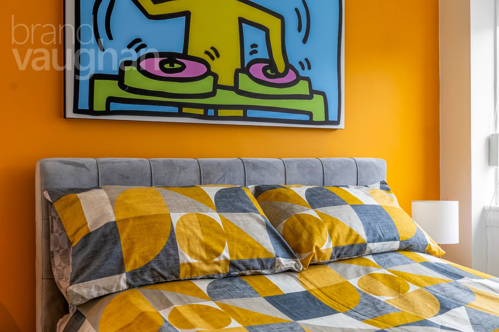 Opposite, the modern kitchen is streamlined and practical, with fitted cabinetry and eye-level units, along with integrated appliances including an oven, induction hob and fully integrated dishwasher. The kitchen also benefits from smart LED lighting, offering hands-free operation and lighting modes that adjust throughout the day to ensure the space is always comfortably lit. A freestanding washer dryer is cleverly concealed within the cabinetry and is included with the flat.