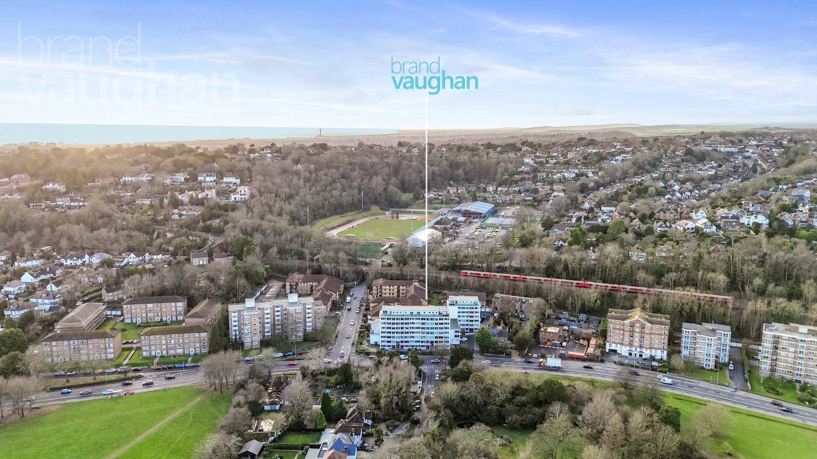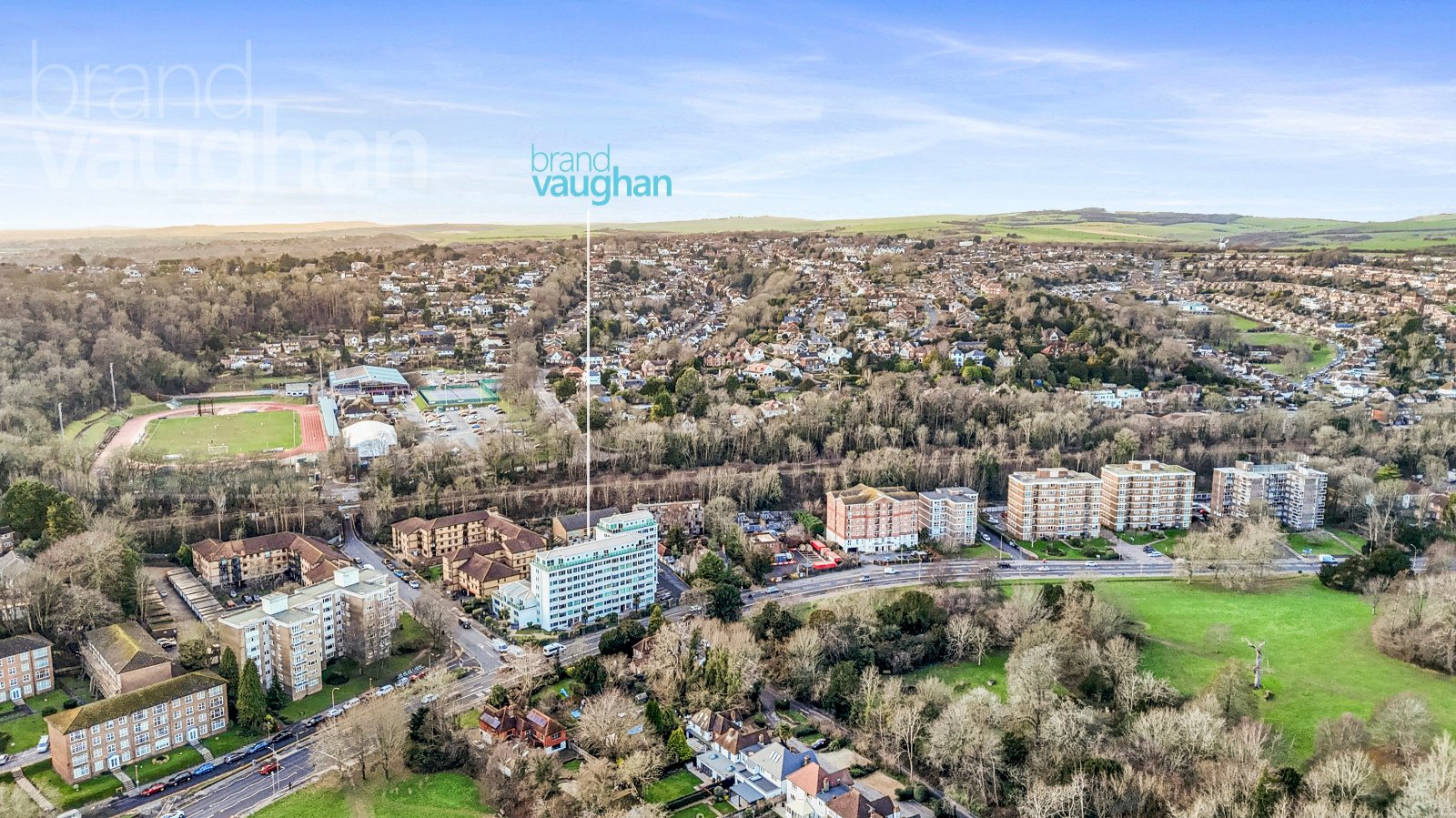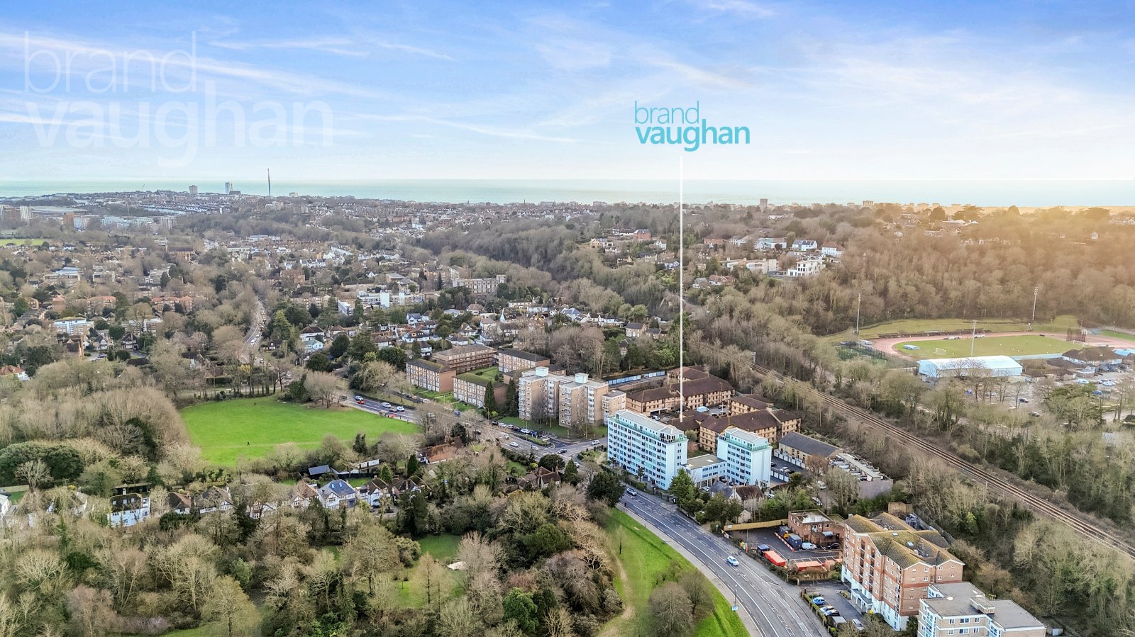 The living and dining room is a welcoming space, with a wall of double-glazed windows framing views across Withdean Park and towards Peacock Lane. There is ample room for both relaxing and dining, with doors opening onto the covered balcony, making it ideal for use throughout the year. Facing East and open to the South, the apartment enjoys plenty of natural light and changing seasonal views. Air conditioning is installed in this room, providing exceptional comfort in warmer months and a welcome luxury rarely found in properties of this type.