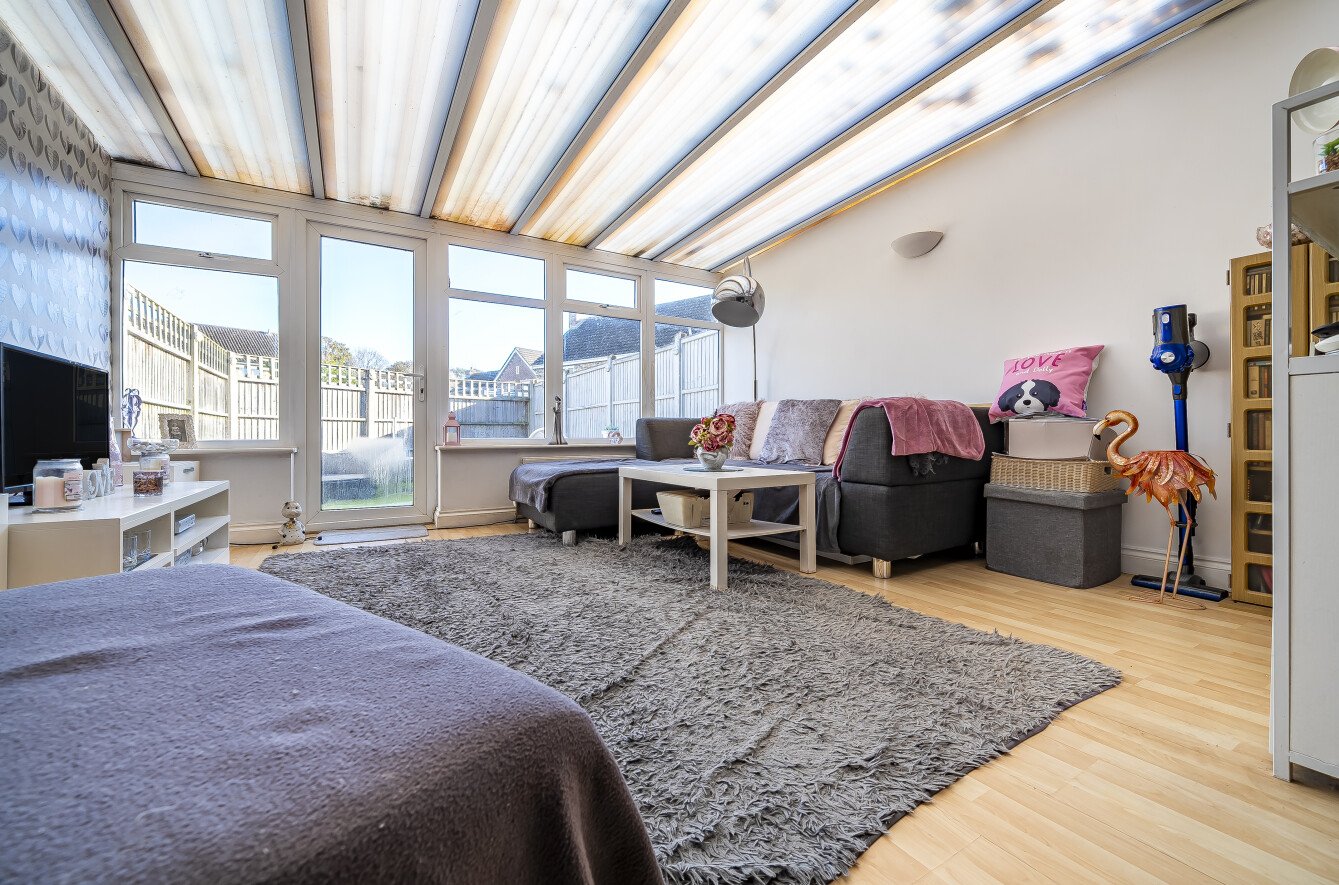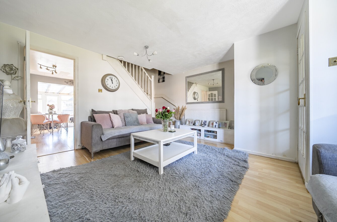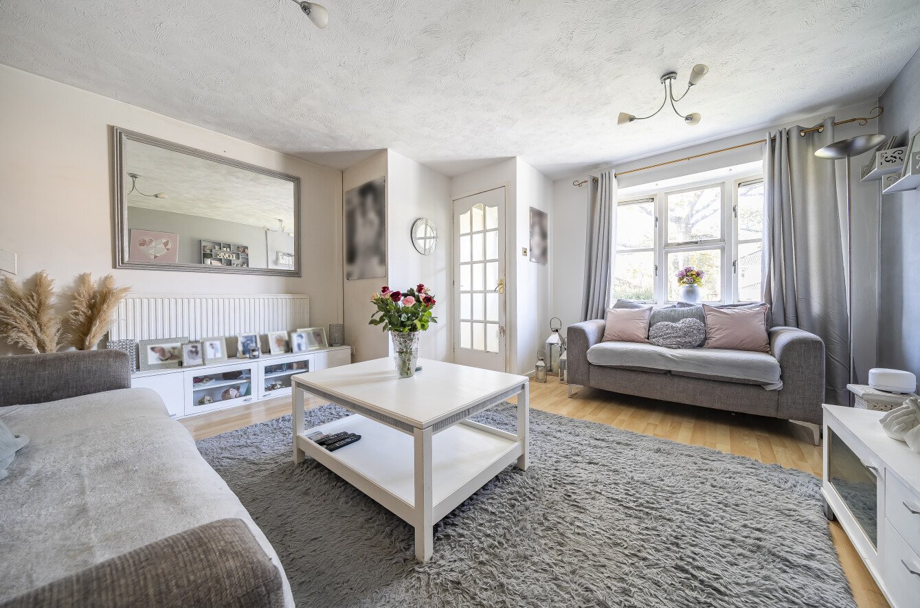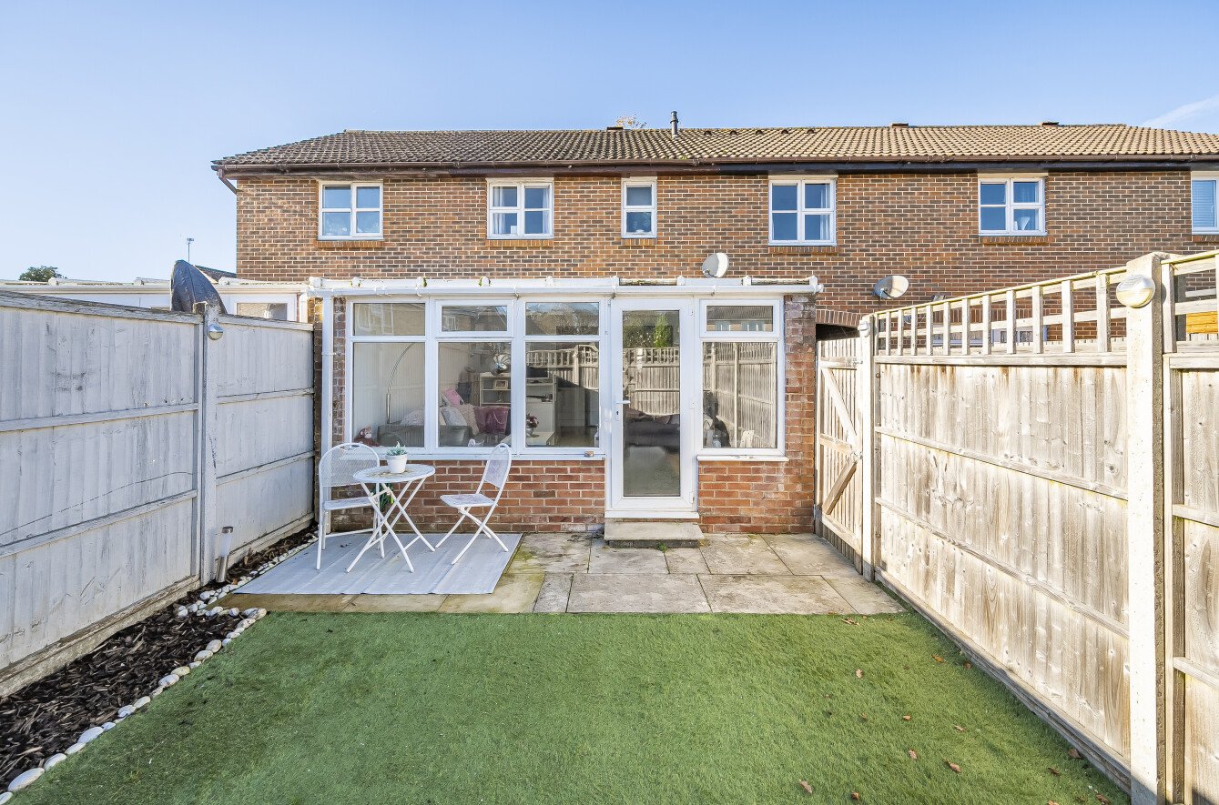 At the rear of the property, you'll find a private, easy-care garden that’s fully enclosed, complete with a side gate that provides convenient access to two designated parking bays. In front of the house, there’s a neatly maintained lawn area, adding a touch of greenery and curb appeal.