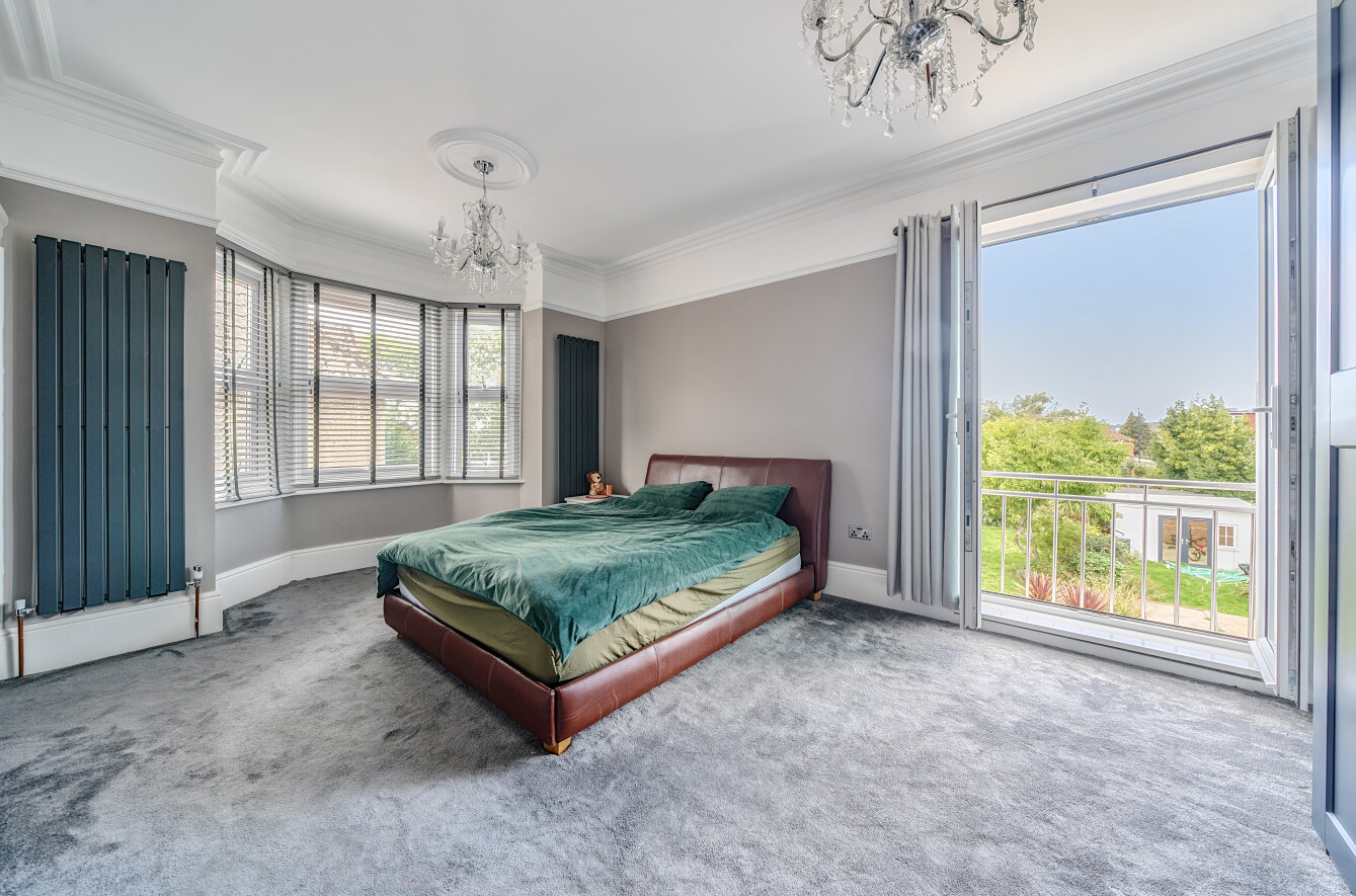 On this floor you will find three double bedrooms, including an impressive master suite. This features a double-glazed bay window to the side and a Juliet balcony overlooking the rear garden. A separate dressing room is accessed from this bedroom and features a range of built-in wardrobes.