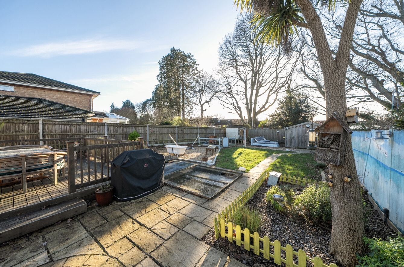 Externally, the property enjoys a generously sized, west-facing garden that has been beautifully maintained. The outdoor space includes a dedicated hot tub area alongside a blend of patio and stone seating areas, creating an ideal setting for entertaining family and friends during the spring and summer months.