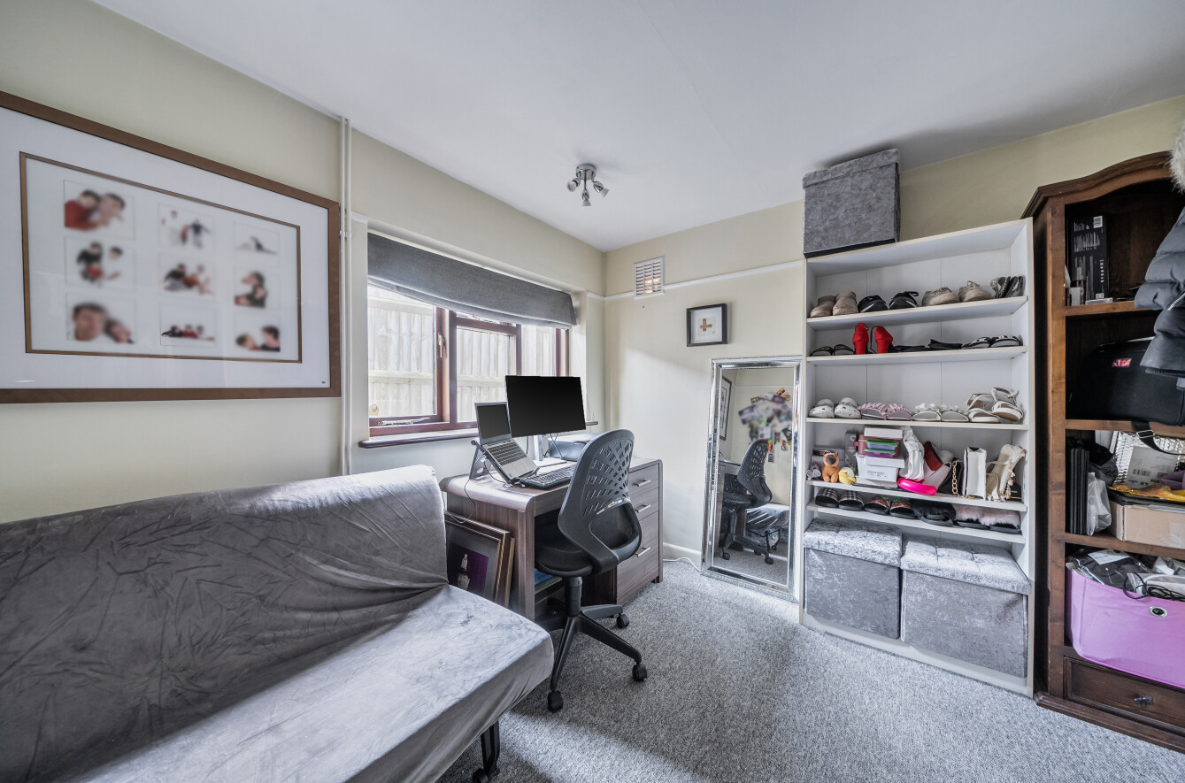 The upper floor is home to the principal bedroom, benefitting from an adjoining dressing room that could alternatively be used as a home office, study, or playroom.