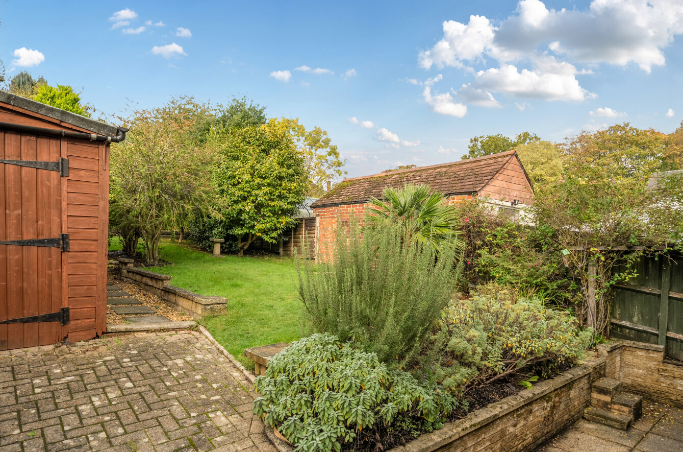Outside, the property continues to impress. The driveway provides ample off-road parking and leads to a detached workshop, plus an additional shed for further storage. The expansive rear garden, one of the largest on the road is beautifully landscaped with mature shrubs and trees, and includes two generous seating areas, offering an idyllic setting for outdoor dining and family gatherings throughout the warmer months.