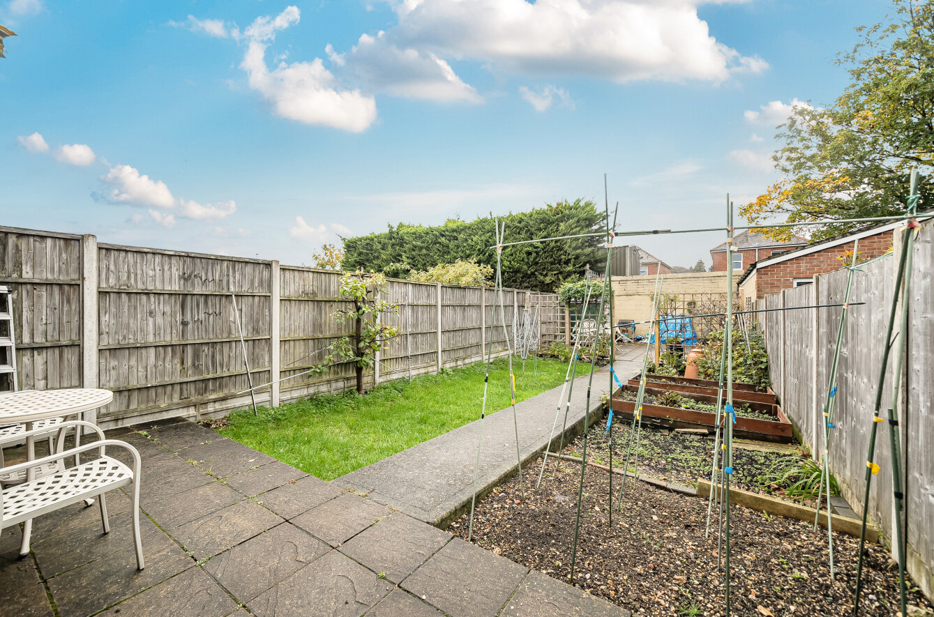 Outside, the rear garden has been thoughtfully designed for relaxation and enjoyment, featuring a generous patio seating area perfect for summer barbecues and al-fresco dining, a neatly laid lawn, and well-maintained vegetable patches. To the front of the property, there is off-road parking with the potential to install an EV charging point.