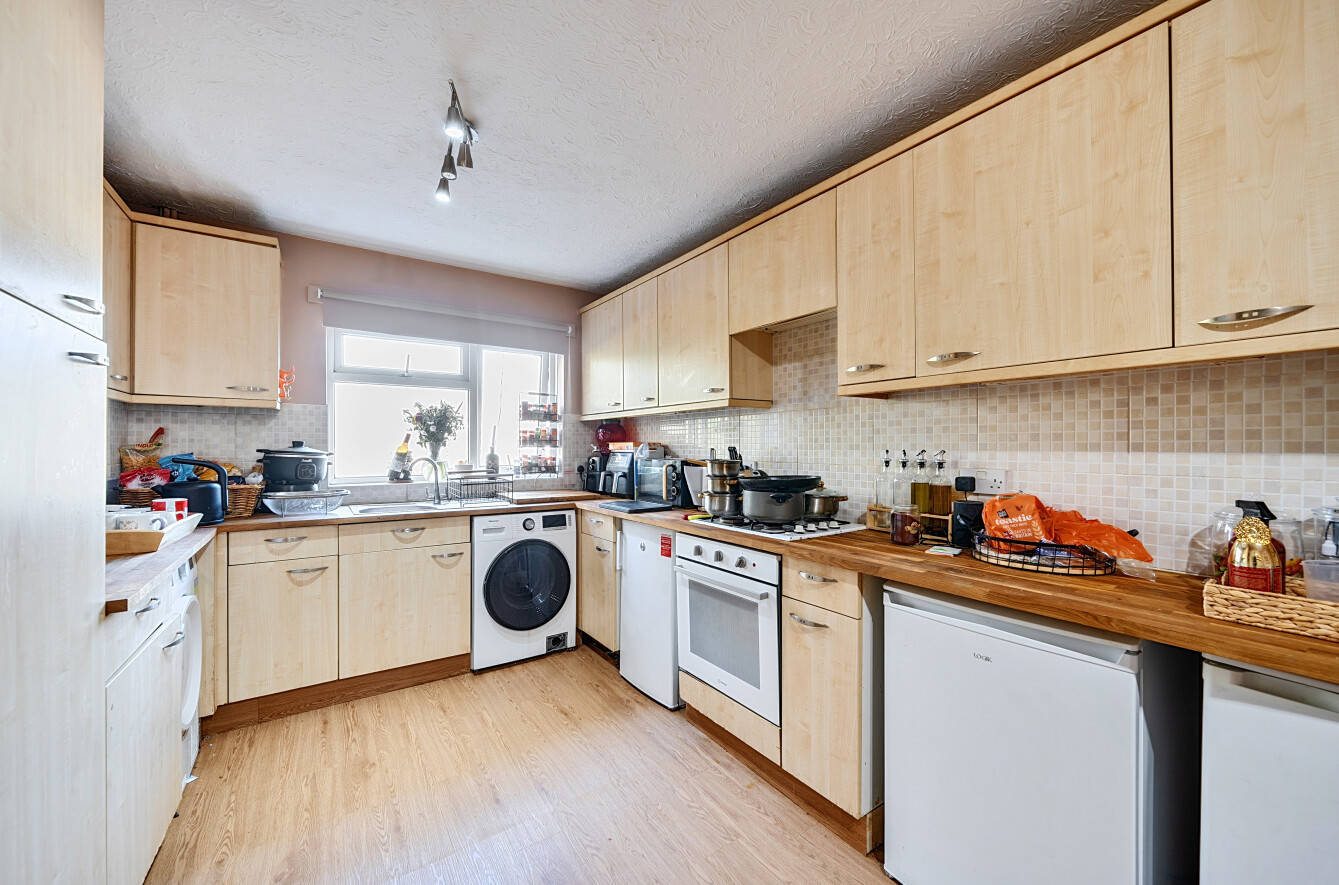 Upstairs, the property offers two spacious double bedrooms and a further single room, all of which are well-proportioned and neutrally decorated. The family bathroom features a full-sized bath with shower over, complemented by a bright, clean finish.