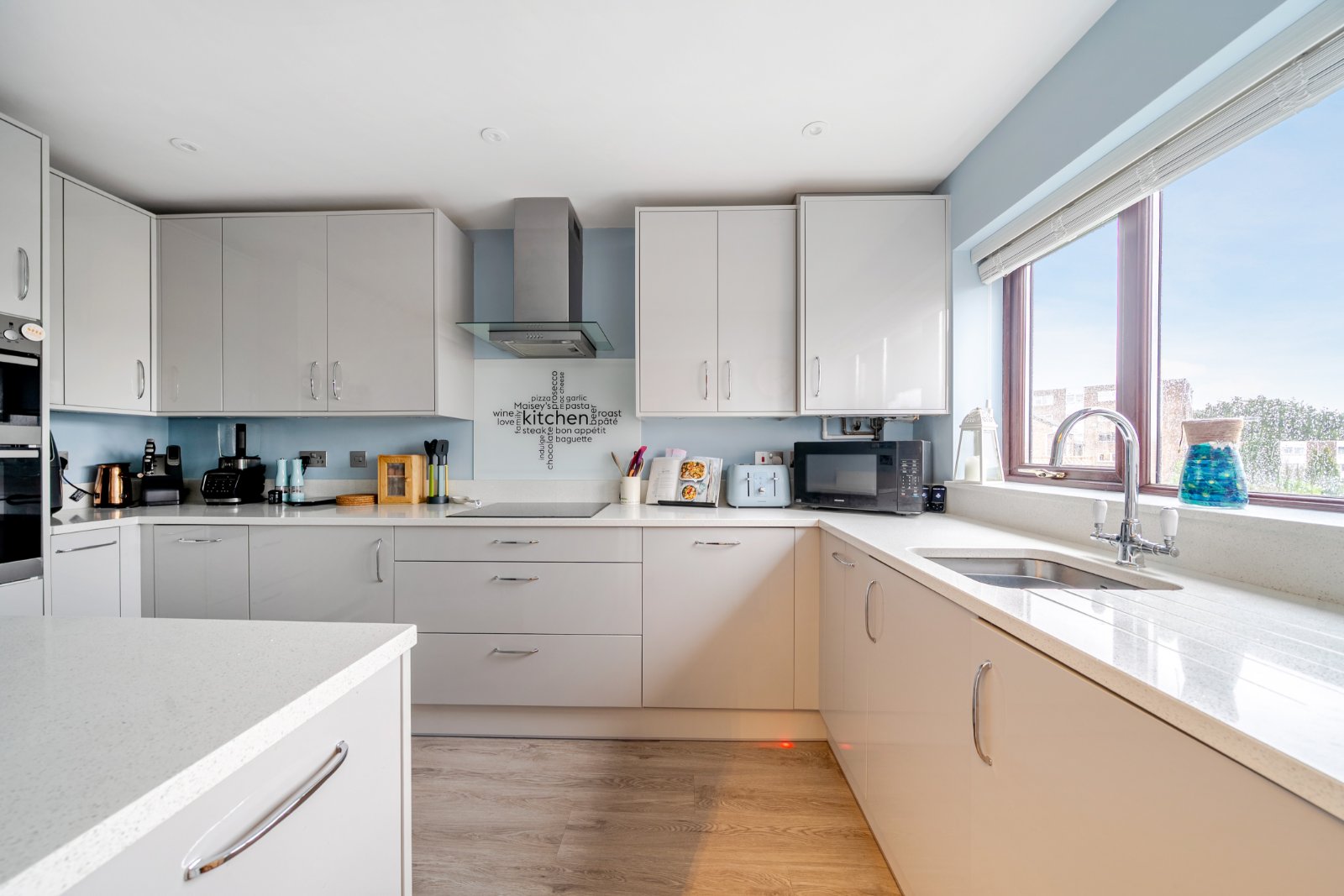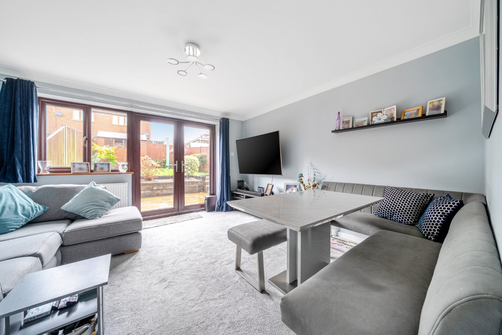 Upon entering the property, you are welcomed via a practical entrance porch which leads into a bright and stylishly refurbished kitchen/breakfast room. Designed with both form and function in mind, the kitchen features sleek glossed units, ample worktop space, and a layout that caters perfectly to modern living. From here, the home opens into a spacious open-plan living and dining area, creating an ideal space for relaxing or entertaining. This room benefits from an understairs storage cupboard and double French doors providing direct access to the sunny rear garden.