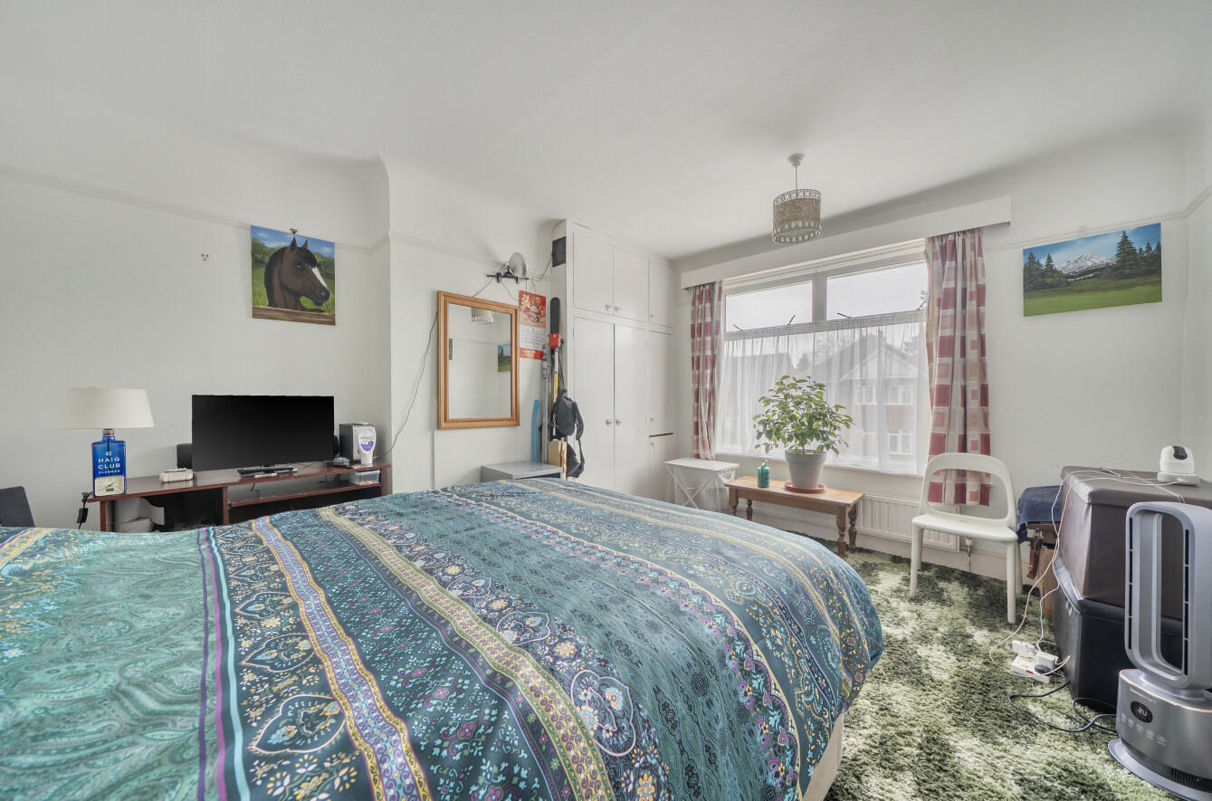 Upon entering, a welcoming entrance hallway leads through to the generously proportioned front sitting room, where a large bay window allows natural light to pour in, creating a bright and inviting space. A second reception room, currently used as a guest bedroom, offers excellent versatility — ideal for multi-generational living, a home office, playroom, or additional lounge. Adjacent is a useful utility area and a convenient downstairs shower room.