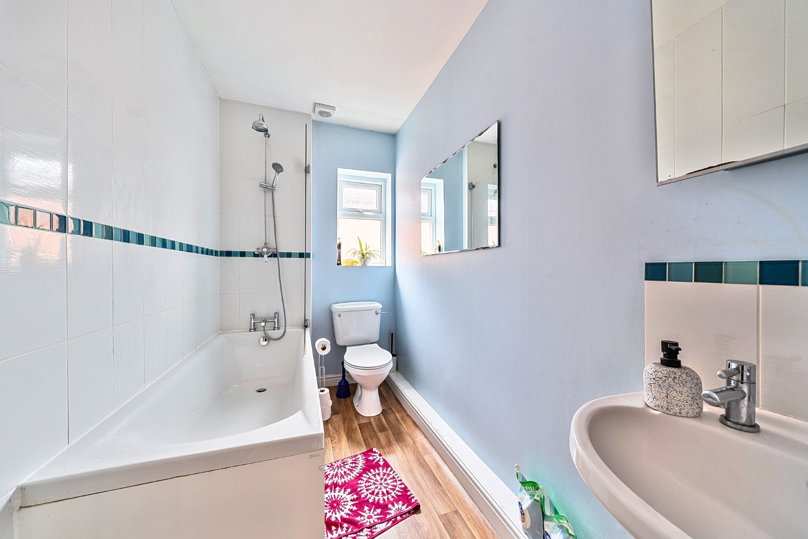 Moving upstairs, bedroom one is front aspect benefiting from built-in wardrobes with sliding doors, with bedrooms two and three both overlooking the rear garden. The family bathroom has a three-piece suite comprising a panel bath with dual head shower over and glass screen, sink and toilet.