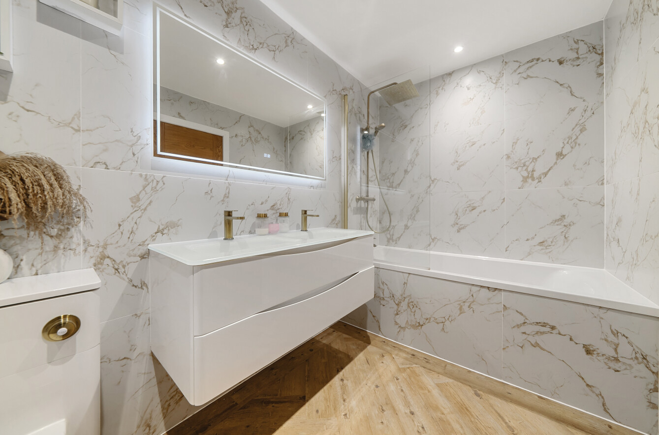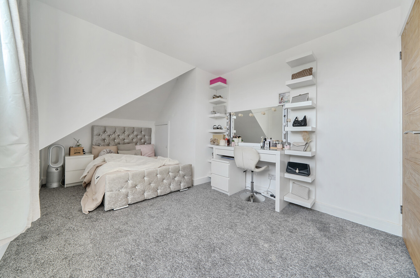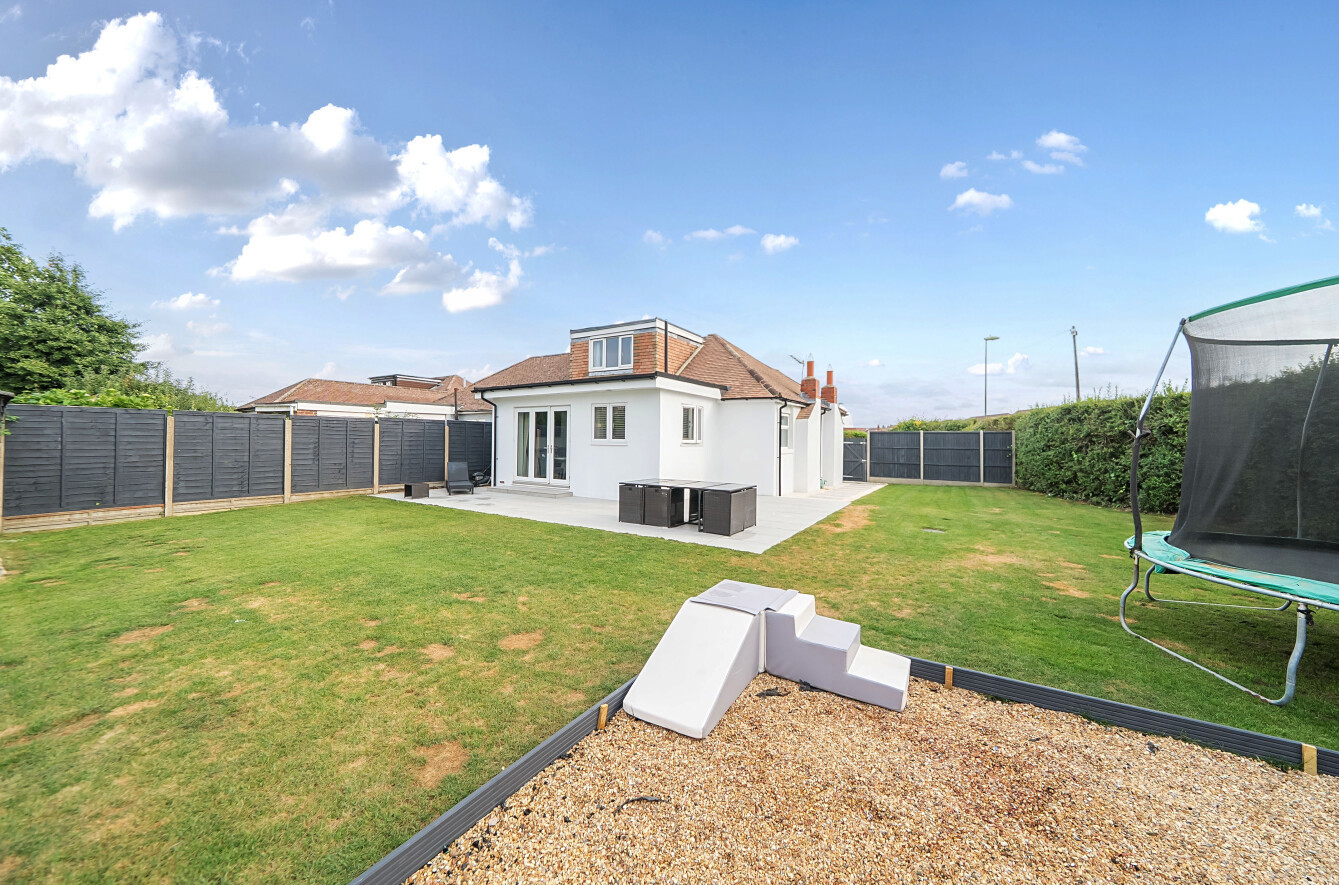 Recently refurbished, this stylish chalet bungalow combines modern luxury with thoughtful design. The home offers four generously sized double bedrooms, a welcoming lounge with elegant feature panelled walls, and a sleek kitchen-diner boasting handleless units and premium integrated appliances. The luxury bathroom is finished to a high specification, while outside, a generous south-facing garden provides the perfect space for relaxation and entertaining. A resin driveway offers ample parking, completing this impressive home with all modern conveniences ready for contemporary living.