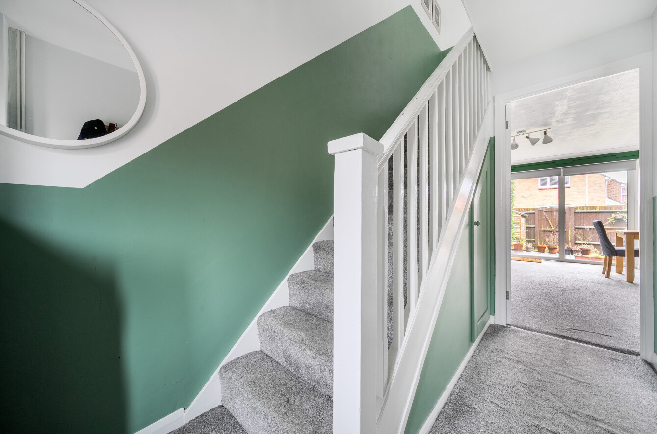 The accommodation begins with a welcoming entrance hall, providing access to a stylish shaker-style kitchen which enjoys a pleasant outlook to the front of the property. To the rear, a spacious lounge/dining room offers an excellent area for both relaxing and entertaining, enhanced by sliding patio doors that open directly onto the rear garden, allowing plenty of natural light to flow through.