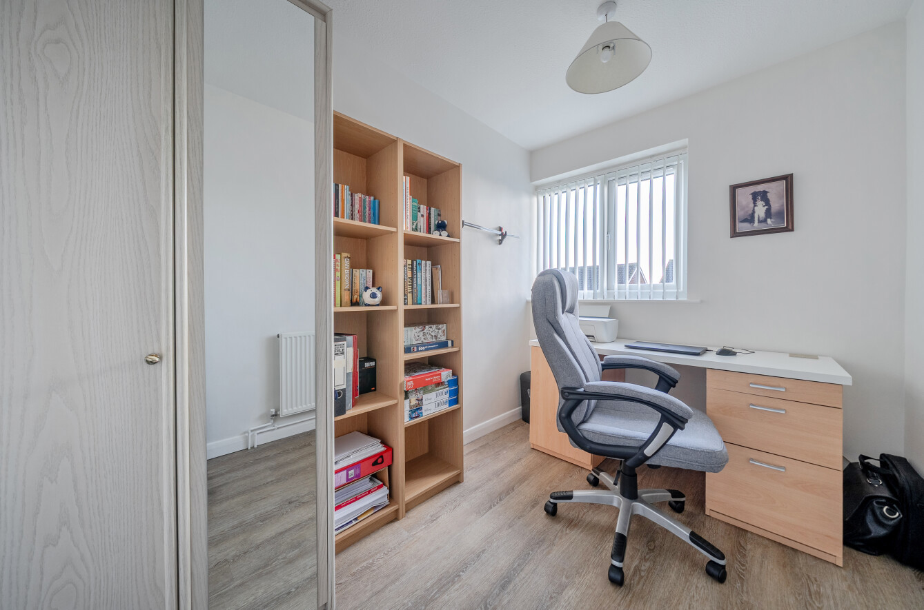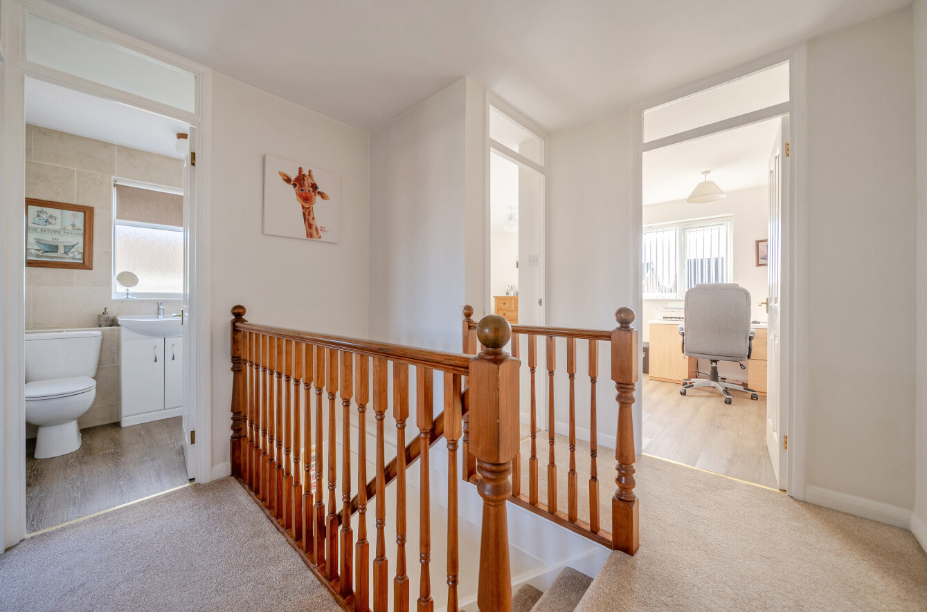Upstairs, the property offers four well-proportioned bedrooms, with bedroom four currently arranged as a study, ideal for home working or flexible family use. These rooms are served by a contemporary family bathroom finished to a modern standard.