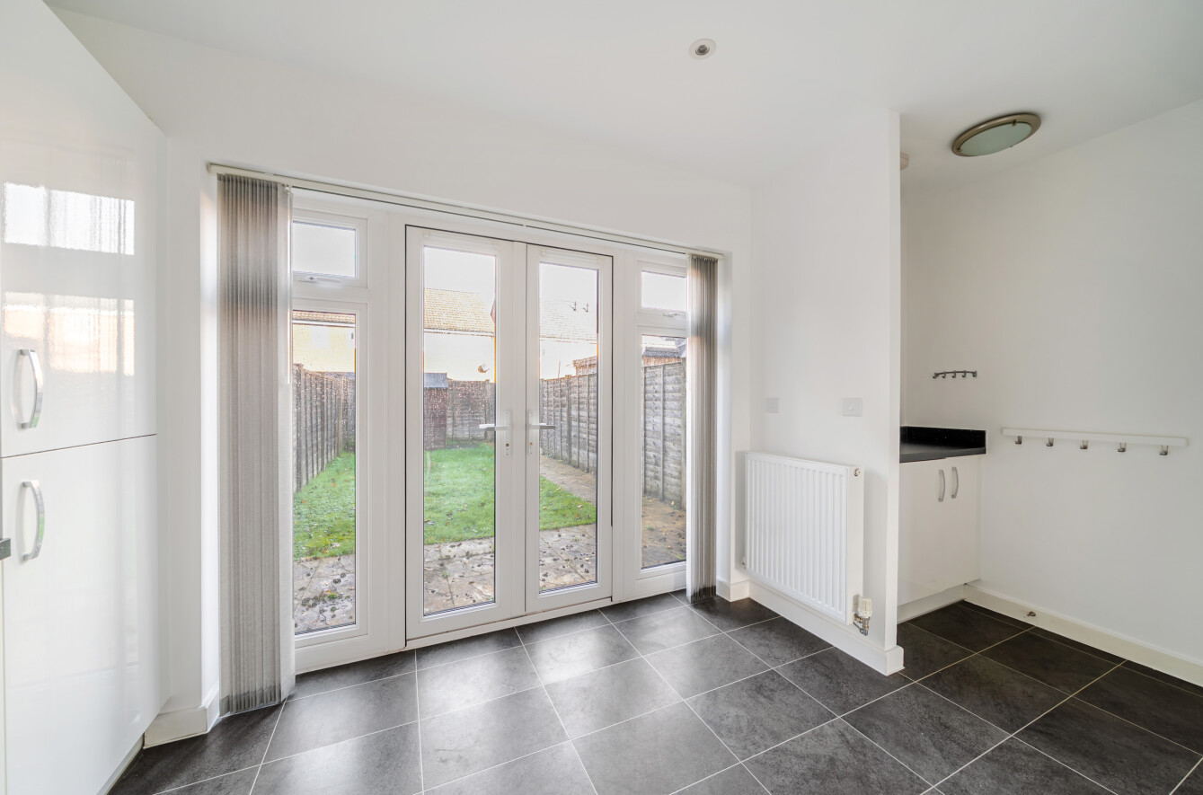 The welcoming entrance hall leads into a bright, comfortable sitting room, while the contemporary open-plan kitchen–dining room sits to the rear, enjoying plenty of natural light and direct access to the garden. This stylish space features sleek cabinetry, integrated appliances, a practical utility nook, and a handy downstairs cloakroom—perfect for modern living.