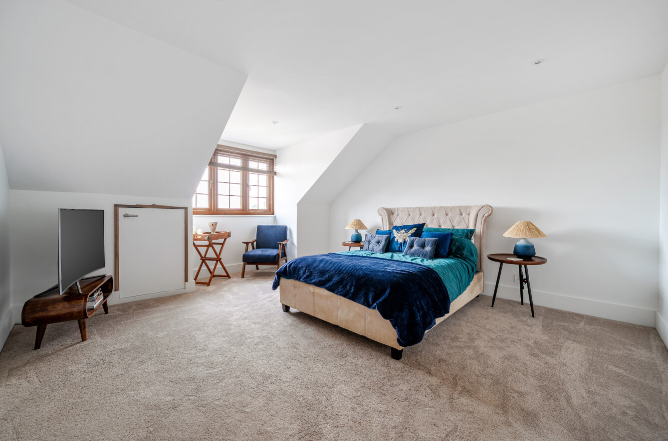 Upstairs, the galleried landing overlooks the reception hall and leads to three further large bedrooms, all offering flexible use, and a refitted shower room. The scale of the accommodation throughout ensures comfort, adaptability and longevity, with bedrooms that comfortably exceed typical expectations.