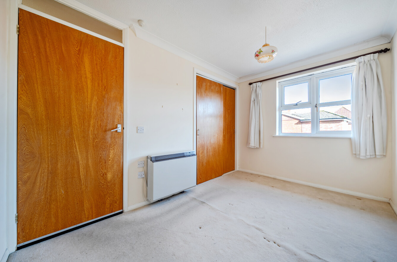The modern refitted kitchen measures approximately 11’11” and has been thoughtfully updated with contemporary units and ample worktop space. There are two well-sized bedrooms, with the principal bedroom measuring 12’6” and the second bedroom 11’10”, the latter benefiting from built-in wardrobes. A well-appointed shower room completes the internal accommodation.