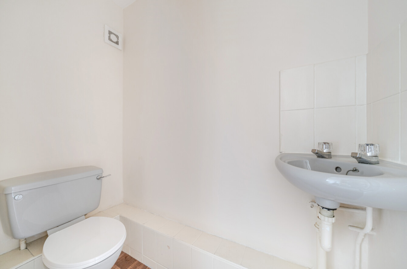 The ground floor features a generous sitting room with plenty of natural light and ample space for both relaxation and dining. To the rear, a well-planned kitchen provides good storage, workable countertop space, and convenient access to the garden. There is also a useful ground-floor WC, adding extra practicality to the layout. Upstairs, the home offers two well-proportioned bedrooms.