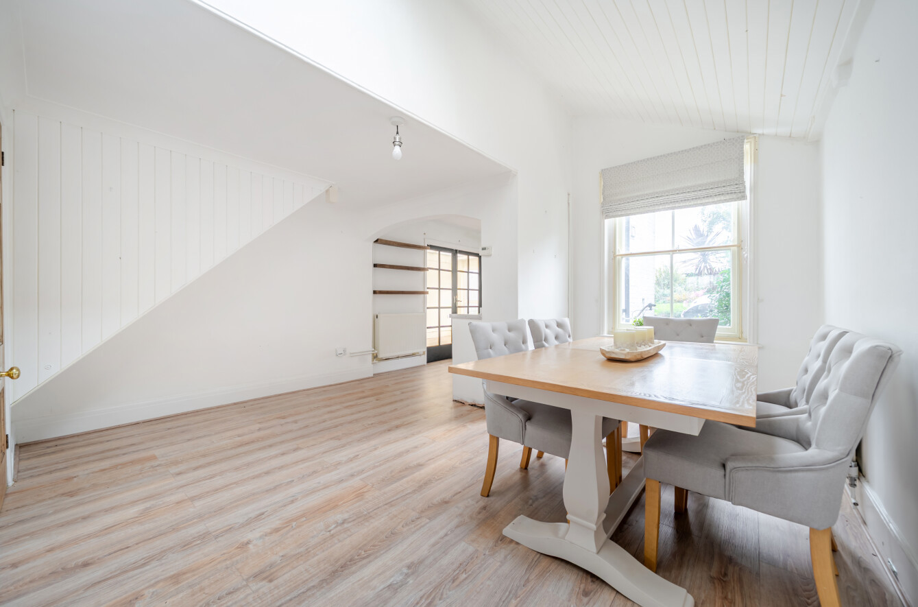 Inside, the accommodation is light, spacious, and thoughtfully arranged, retaining a sense of period elegance throughout. The ground floor comprises two inviting reception rooms, one with a fireplace and both benefitting from an abundance natural light, creating flexible living spaces. The kitchen, located to the rear, opens directly onto the garden, offering a seamless connection between indoor and outdoor living. Additional ground-floor rooms provide potential for a dining area, study, or hobby space, depending on your needs.