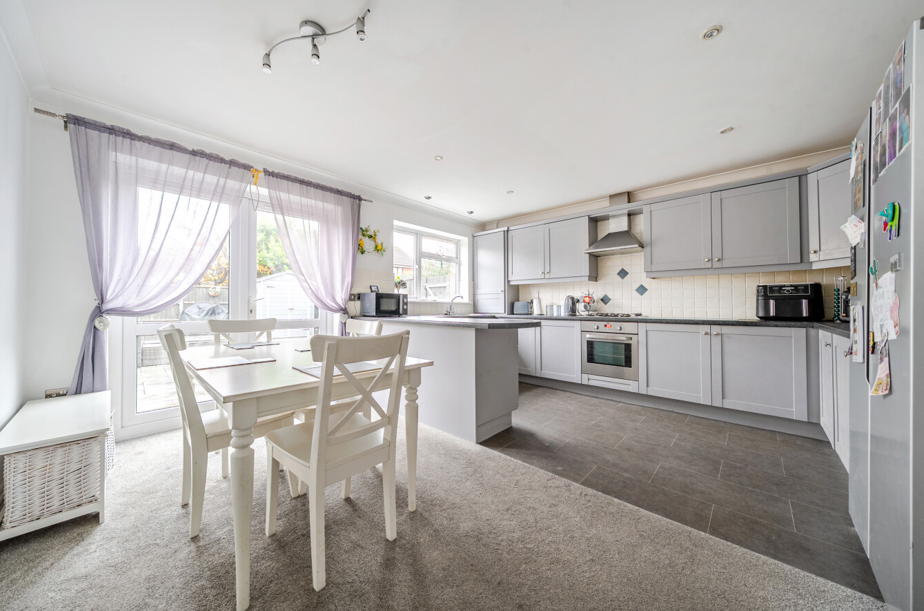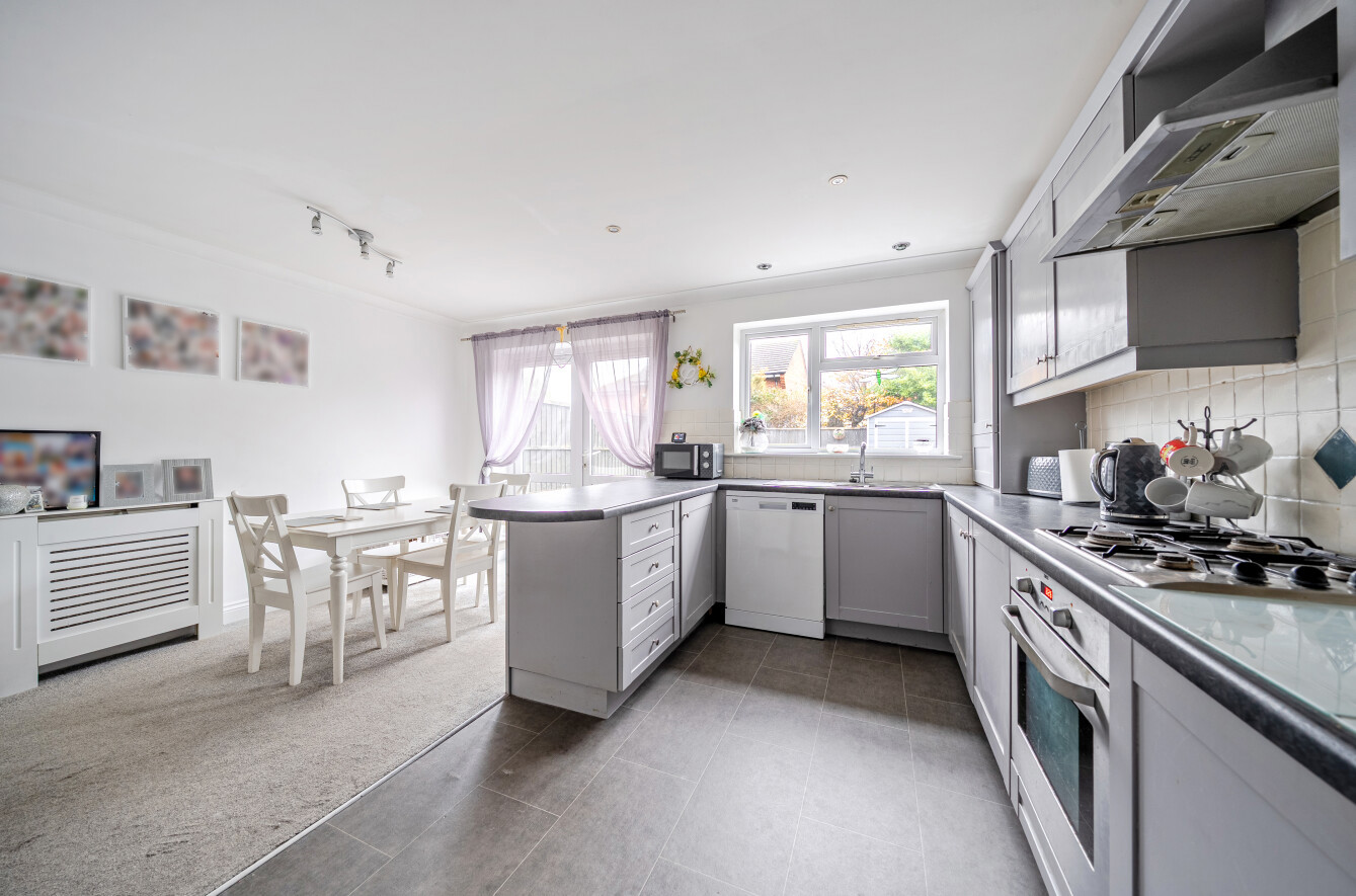 The property welcomes you with a substantial driveway offering parking for three cars, complemented by a carport, ensuring outstanding practicality from the outset. Inside, the ground floor features a bright and contemporary kitchen/dining room, complete with ample storage and natural light. A downstairs toilet/utility room provides added convenience, while a versatile ground-floor bedroom offers the perfect space for a guest room, teenage space or an ideal home office.