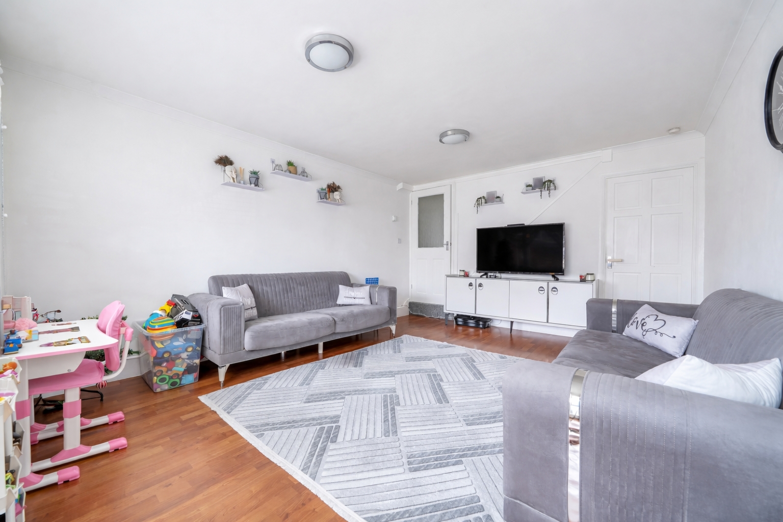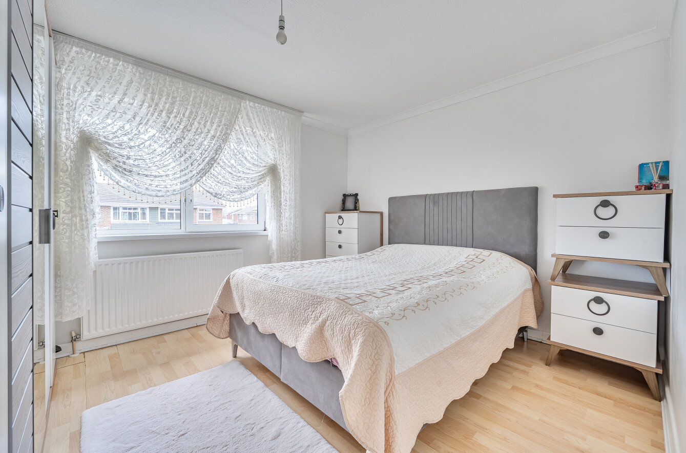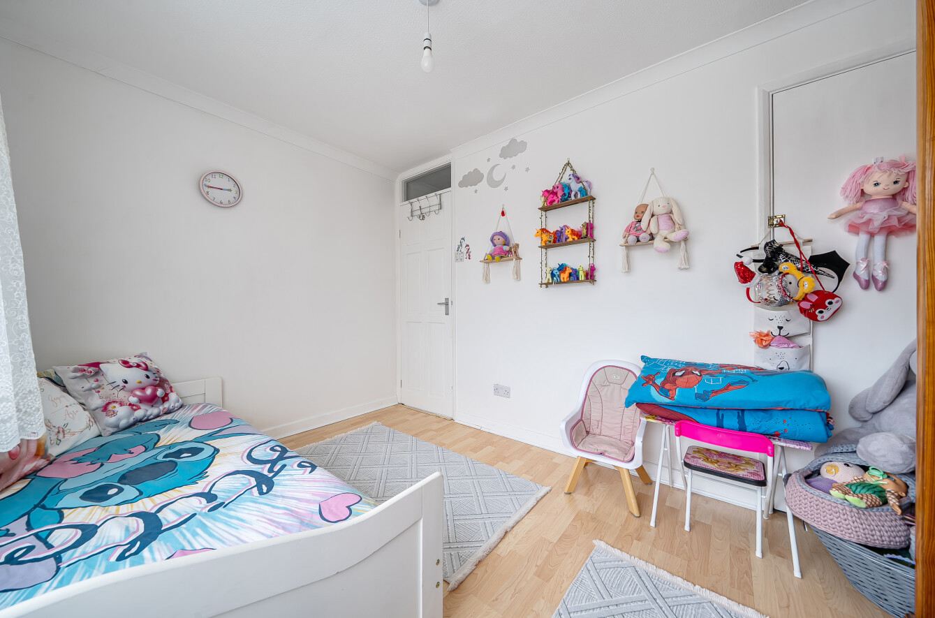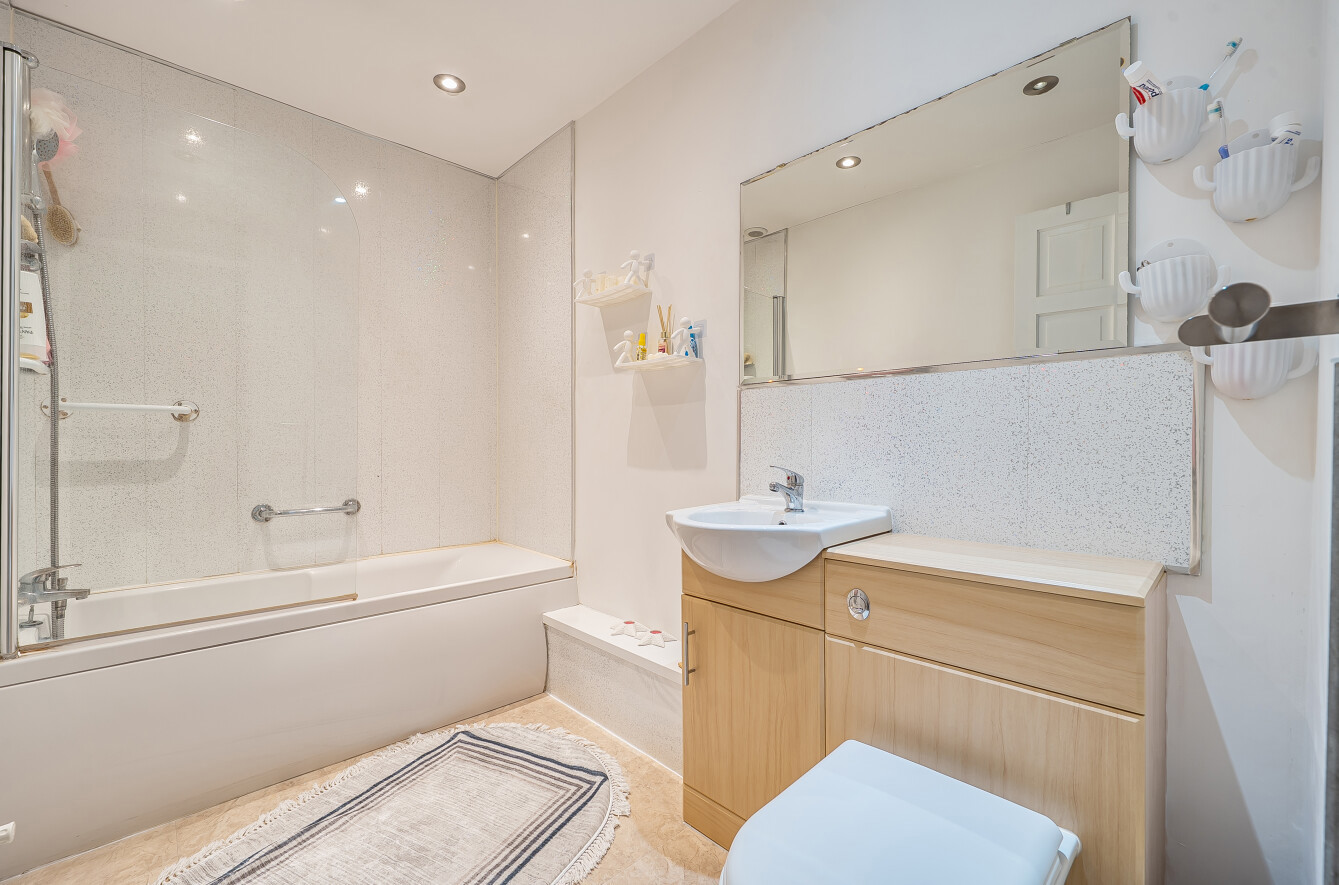 Upstairs, the property offers two well-proportioned bedrooms, both suitable doubles and presented in a neutral style. The family bathroom is fitted with a modern white suite and completes the first-floor accommodation.
