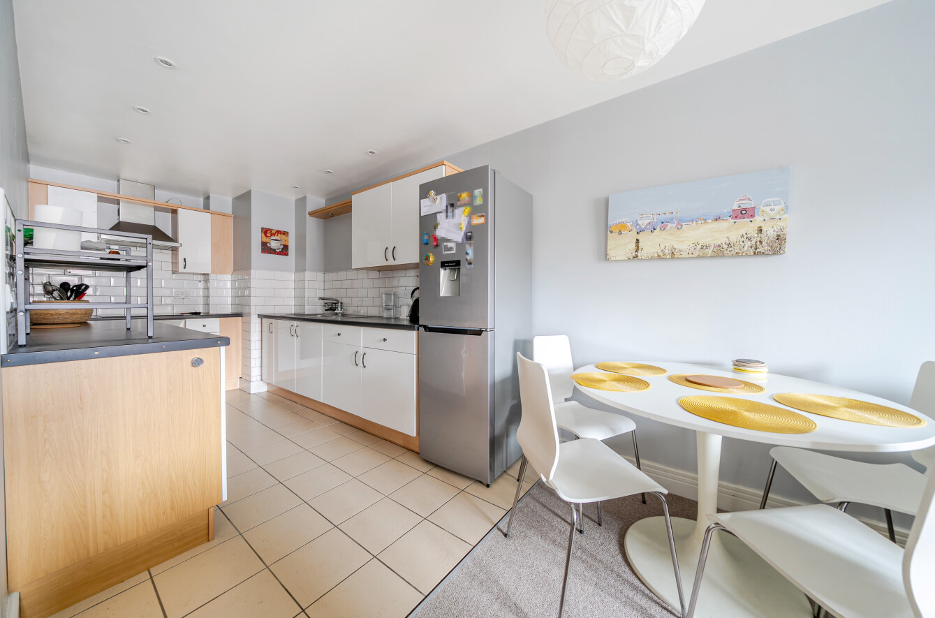 The adjoining kitchen is smartly fitted with a range of contemporary units, integrated appliances and plenty of worktop space, making it both practical and stylish. There are two well-proportioned double bedrooms, both tastefully decorated and offering comfortable accommodation. The main bedroom benefits from a modern en-suite shower room, while the second bedroom is served by a sleek family bathroom finished to a high standard, providing flexibility for guests or family living.