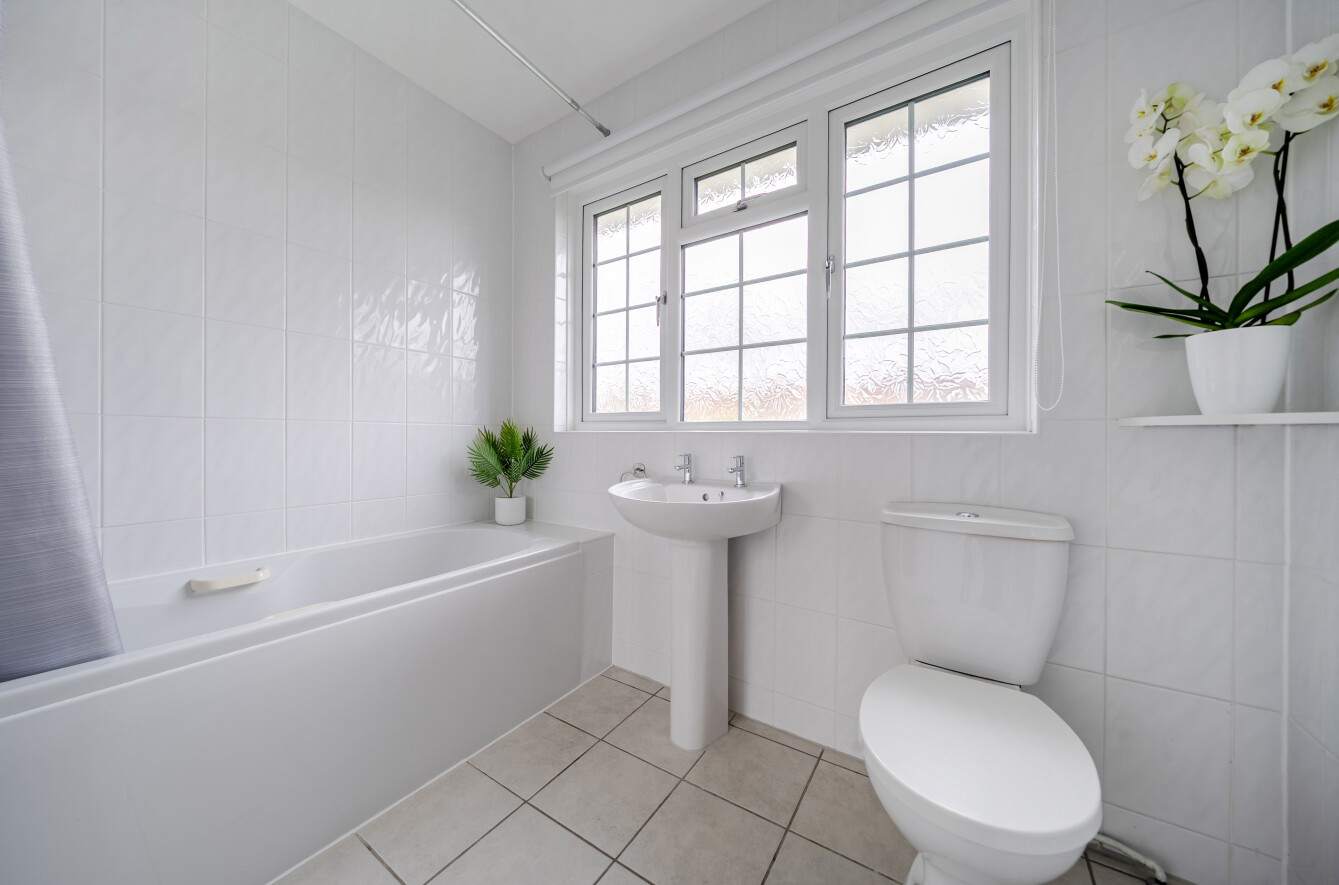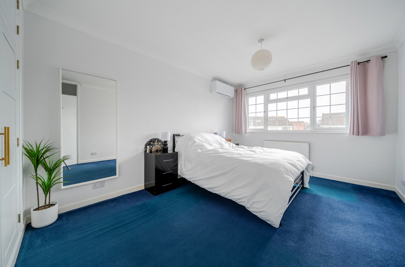 The property also benefits from an integrated garage with internal access, offering excellent storage, potential utility space or secure parking. Upstairs, the home provides three generously sized bedrooms, all bright and well-proportioned. A notable feature of the first floor is the air conditioning, offering additional comfort during the warmer months. The bedrooms are served by a modern family bathroom, finished in a clean and contemporary style.
