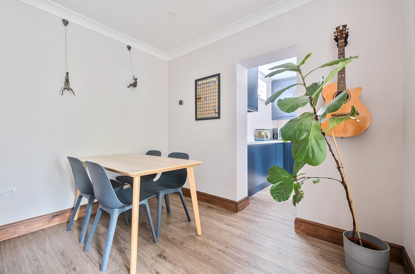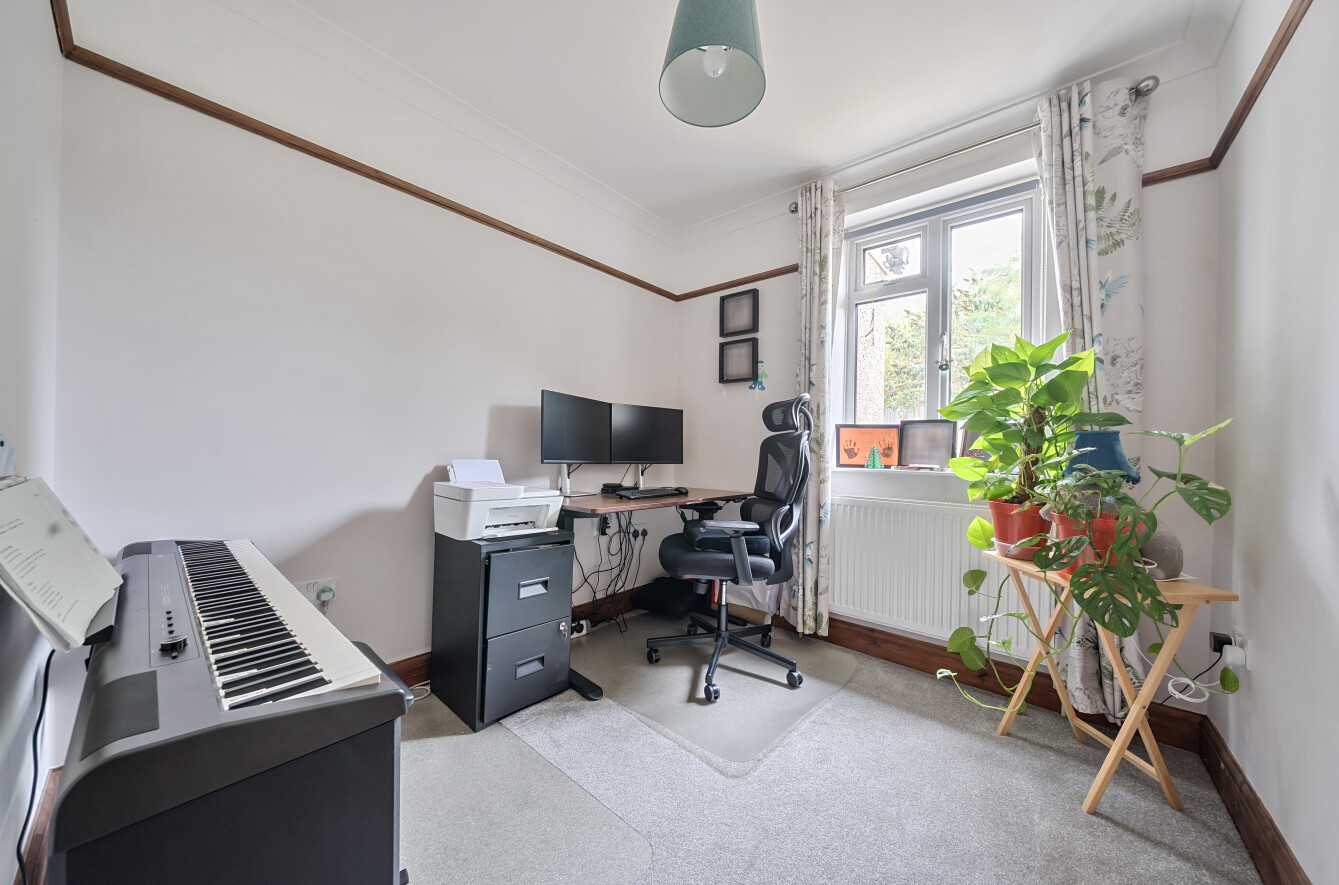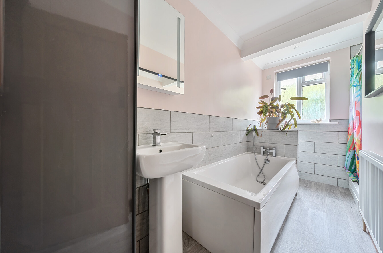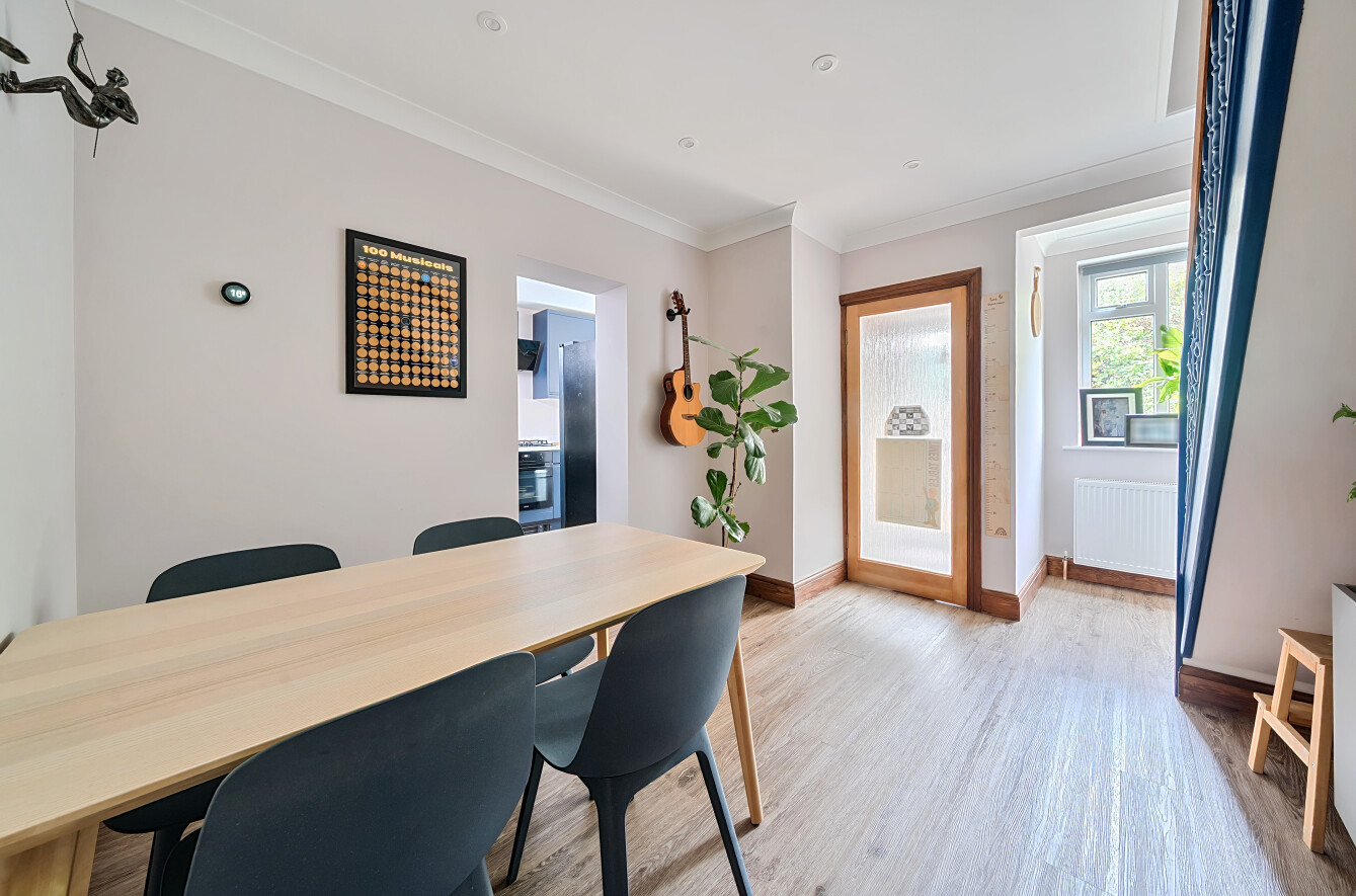 The ground floor boasts a welcoming sitting room with a feature bay window, filling the space with natural light. A separate dining area provides the ideal setting for family meals and entertaining, while the modern kitchen is fitted with sleek units and ample work surfaces. The layout flows seamlessly, offering both comfort and functionality. Benefitting from three bedrooms on the ground floor, including a bright and spacious principal bedroom with bay window, alongside a stylish family bathroom and additional cloakroom. Upstairs, the property continues with a further bedroom, accompanied by a modern shower room. Externally, the property enjoys a private rear garden with patio and lawned areas, perfect for outdoor dining and relaxation. To the front, a generous driveway provides off-road parking and access to a garage. Combining character with modern living, this property is perfectly suited to families and professionals seeking a convenient and well-connected home.