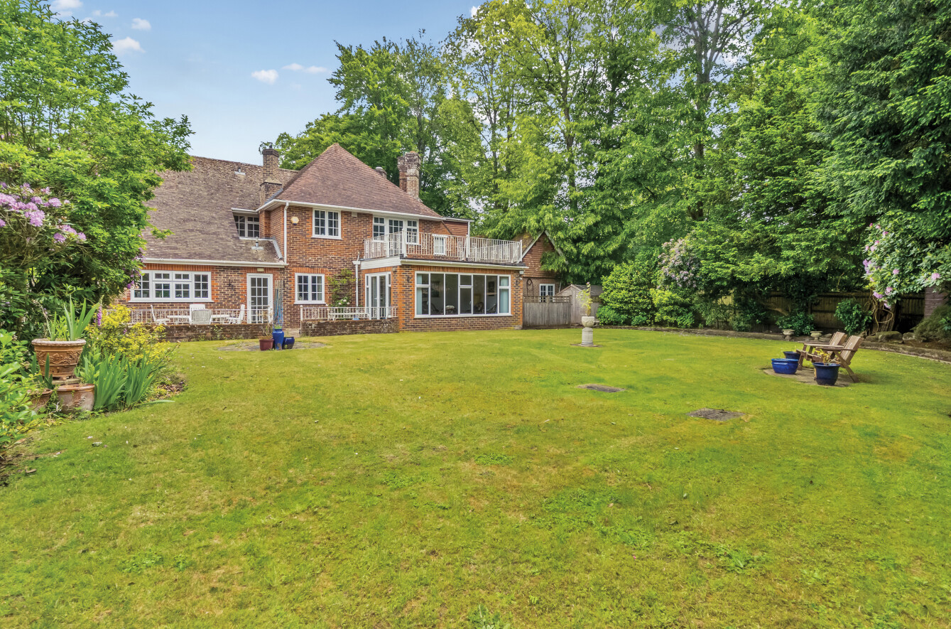 Externally, there is a sweeping driveway with ample parking and access to the detached double garage. To the rear there is stunning south-facing garden with delightful shrubs and borders, a large lawn and generous terrace area ideal for al fresco dining. The property is further offered for sale with a complete onwards chain. Please note that this property has a private drainage system.
