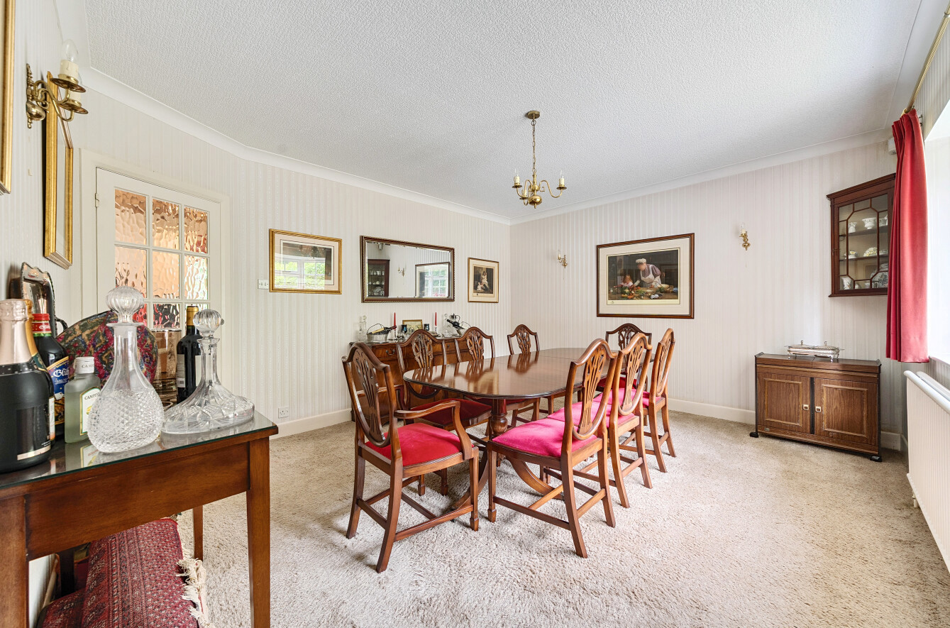 The kitchen/breakfast room offers a range of integrated appliances with lightly finished units, space for white goods and flows nicely into the breakfast area. A larger, separate dining area is found on the ground floor providing the perfect space for more formal entertaining and is complemented wonderfully by the purpose built bar, a rare addition for any property in the area.