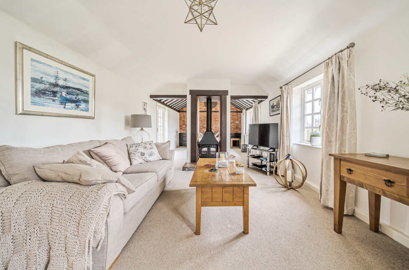The country style kitchen offers an array of storage and is conveniently located next to the dining area with exposed beams and an open fireplace perfect for more formal entertaining. To the rear of the home, the cottage has been designed to incorporate versatile living with a large sitting room offering views over the grounds and multiple reception areas, ideal for larger families needing extra space.