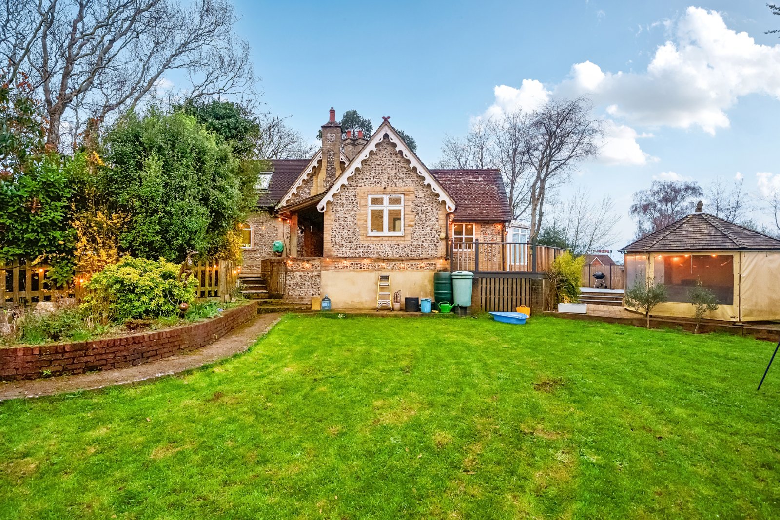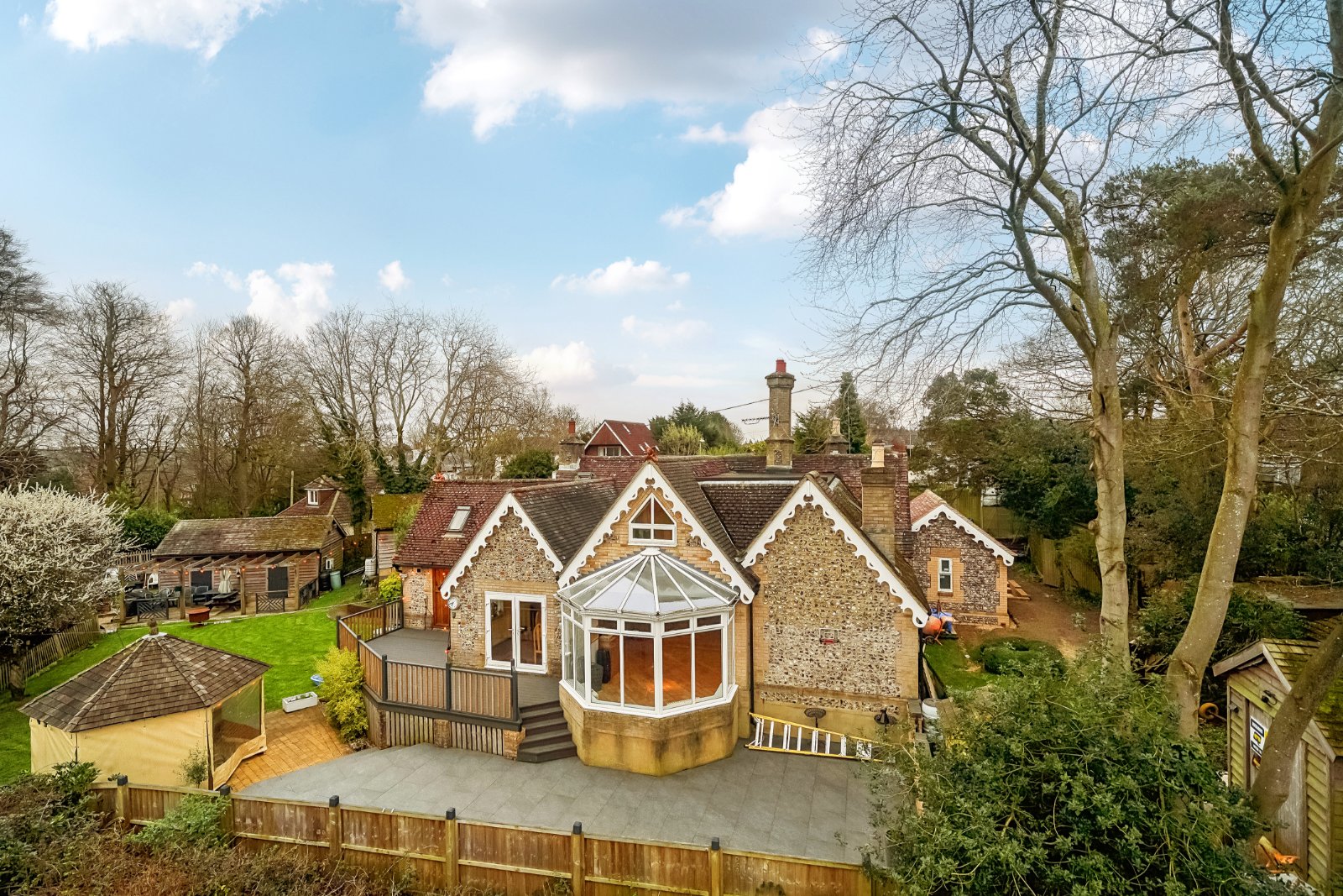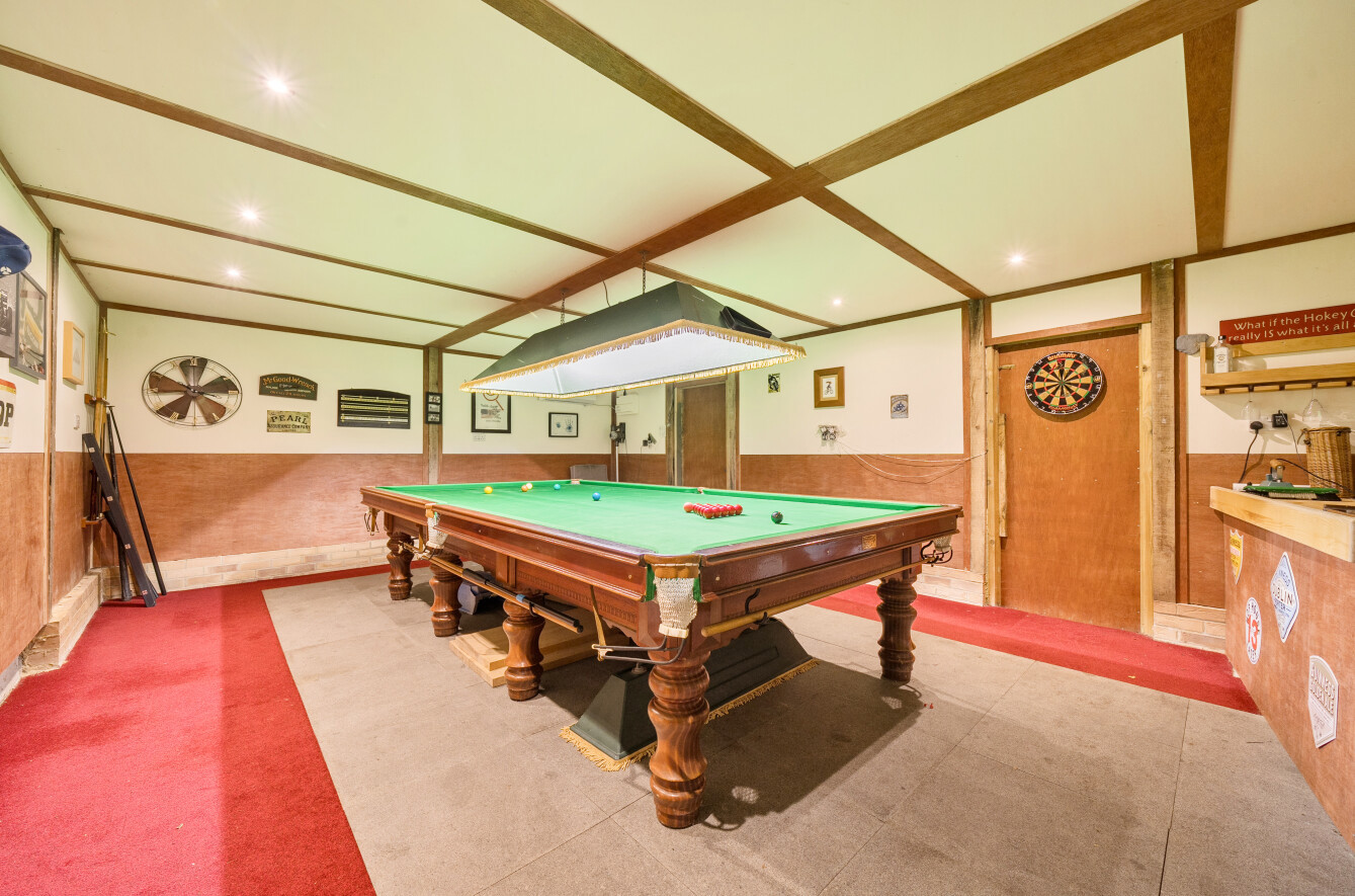 For those who enjoy entertaining, the property boasts a stunning games room, ideal for hosting guests, while the beautifully maintained gardens, complete with a patio terrace, provide a tranquil space to unwind. Additionally, the property benefits from a detached garage.