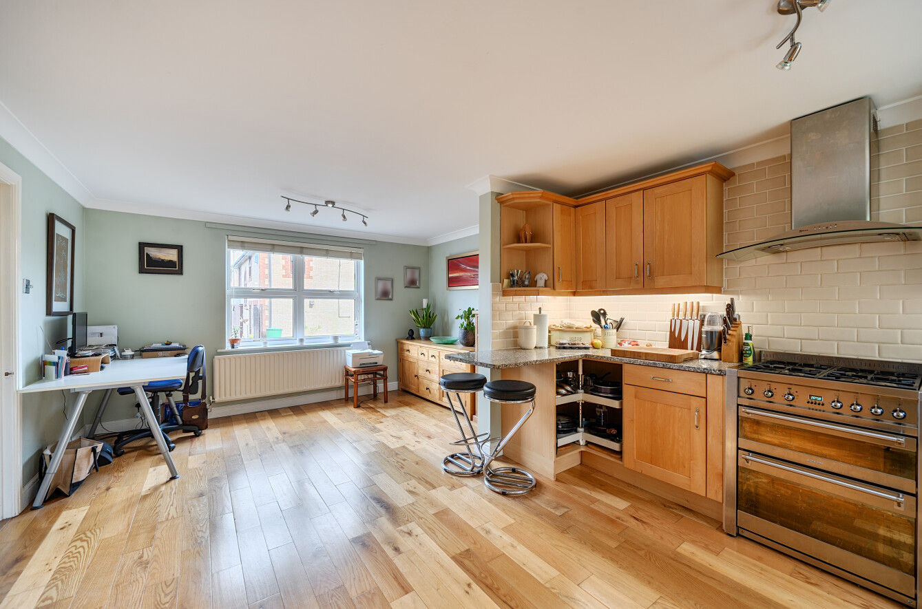 The ground floor provides a welcoming entrance hall leading through to a large and bright sitting room, which benefits from French patio doors providing direct access to the rear garden, creating an excellent space for both relaxing and entertaining. In addition, there is a spacious kitchen/dining room offering an ideal hub for family life, with ample storage and worktop space. The kitchen/diner also enjoys direct access to the garden, further enhancing the connection between indoor and outdoor living.