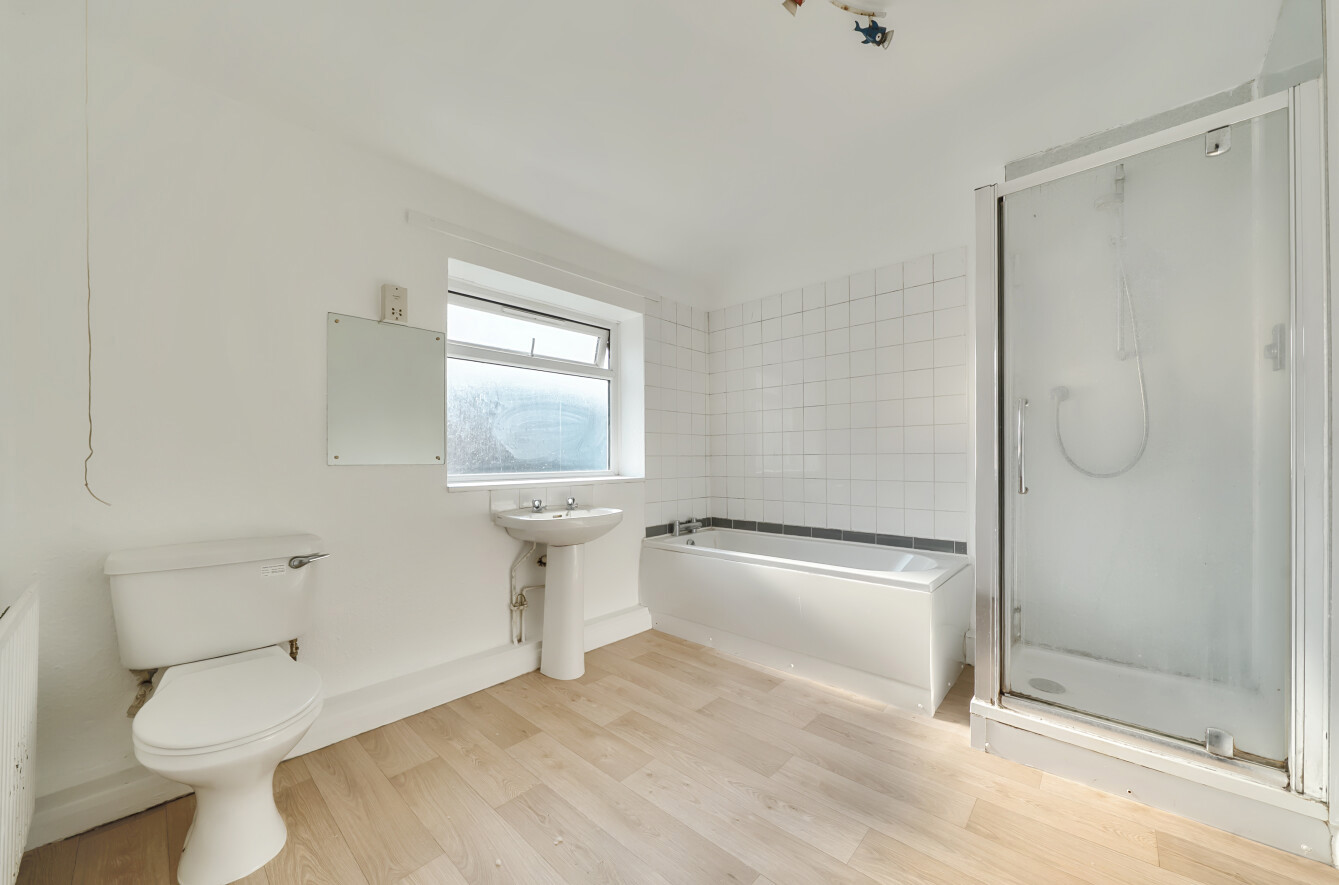 Upstairs, there are two well-proportioned bedrooms, both finished to a high standard, along with a stylish bathroom featuring a modern suite and walk-in shower.