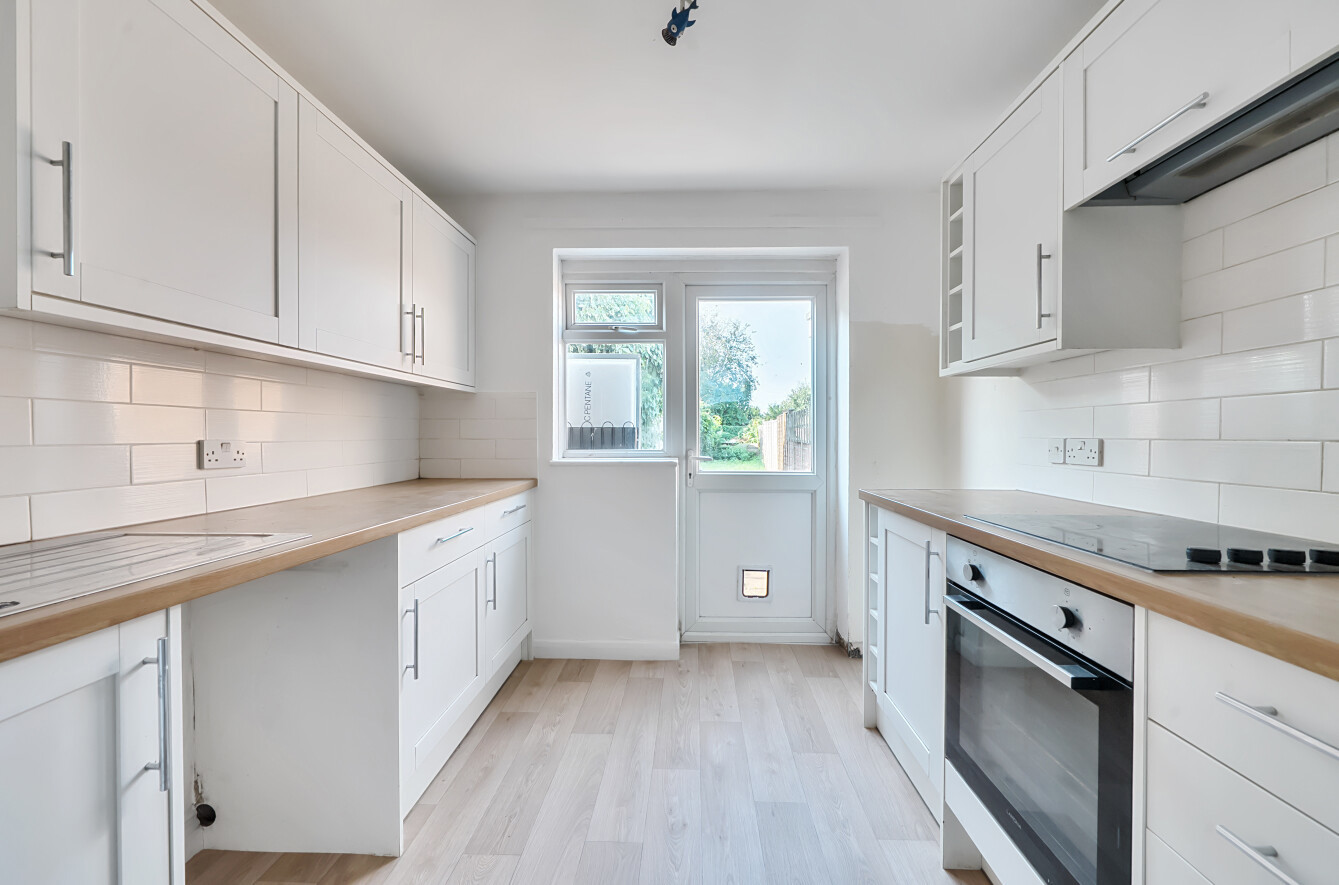 The ground floor features a spacious and light-filled living room that flows into a dining room and contemporary kitchen, complete with sleek cabinetry, ample workspace, and direct access to the rear garden.
