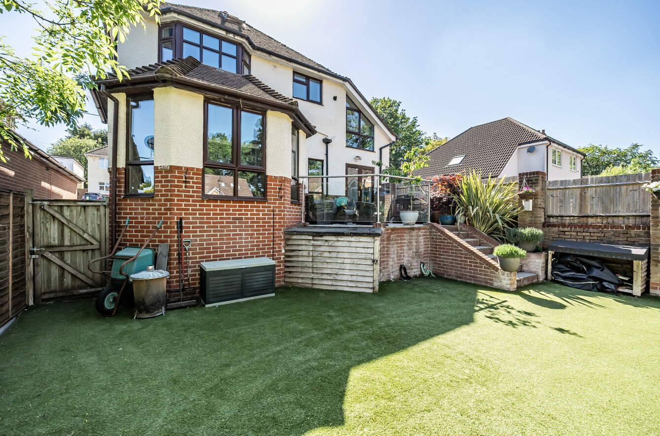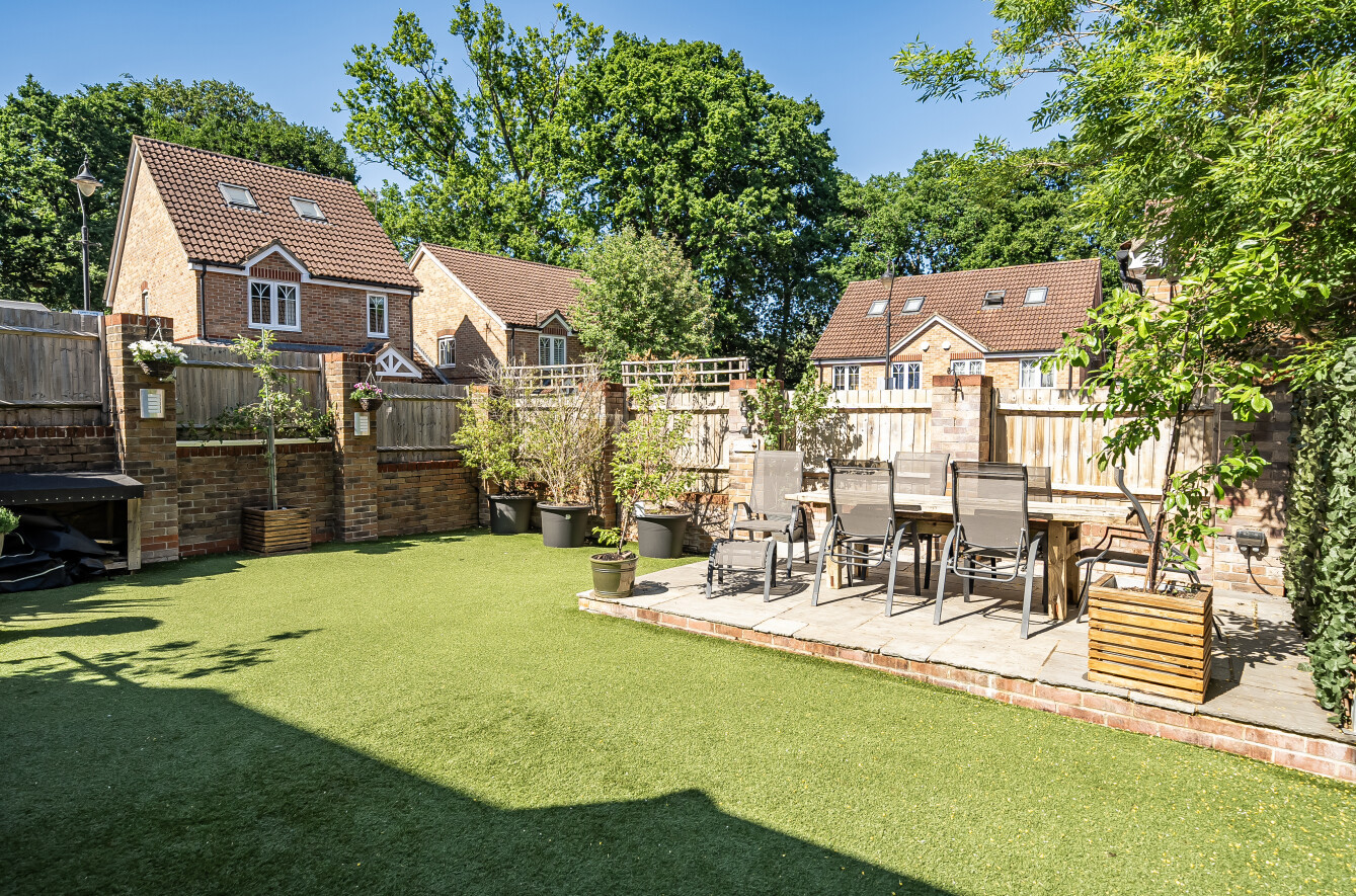 The rear garden is a standout feature—generously sized and thoughtfully designed for low-maintenance living with Astro turf and multiple patio areas, perfect for al fresco dining and entertaining. Set over two levels, with the garden situated below the main house, the layout offers a high degree of privacy from neighbouring properties.