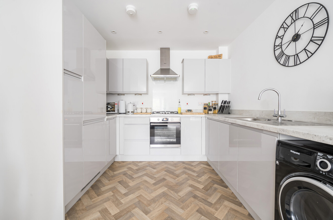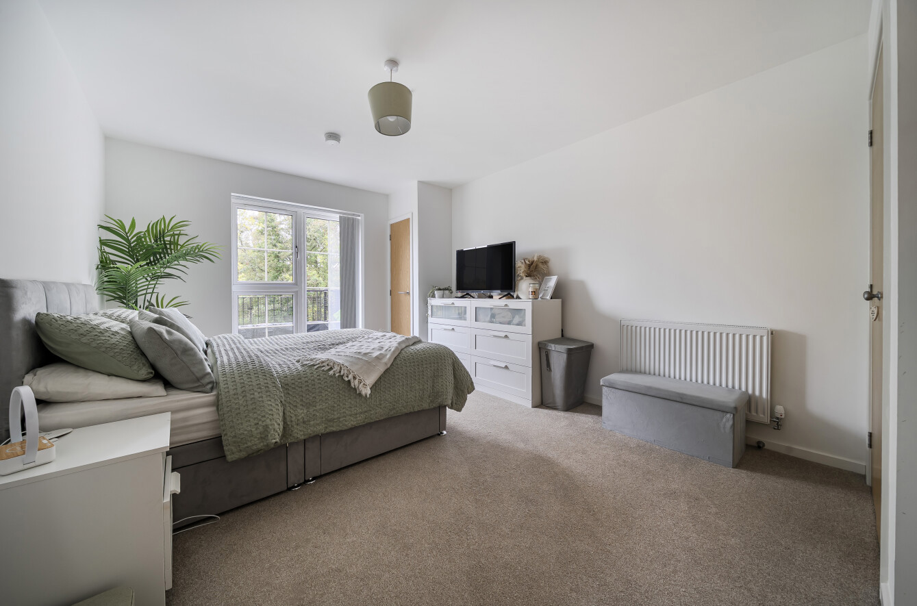 The apartment offers a superb standard of finish throughout, combining modern open-plan living with a peaceful and private atmosphere. The spacious living and dining area benefits from excellent natural light, enhanced by large windows and French doors that open onto a private balcony — the perfect spot to relax and enjoy the surrounding views. The sleek and stylish kitchen is fitted with high-quality units and integrated appliances, ideal for entertaining or everyday living. The bedroom is very generously sized, featuring built-in wardrobes. A contemporary family bathroom completes the accommodation.