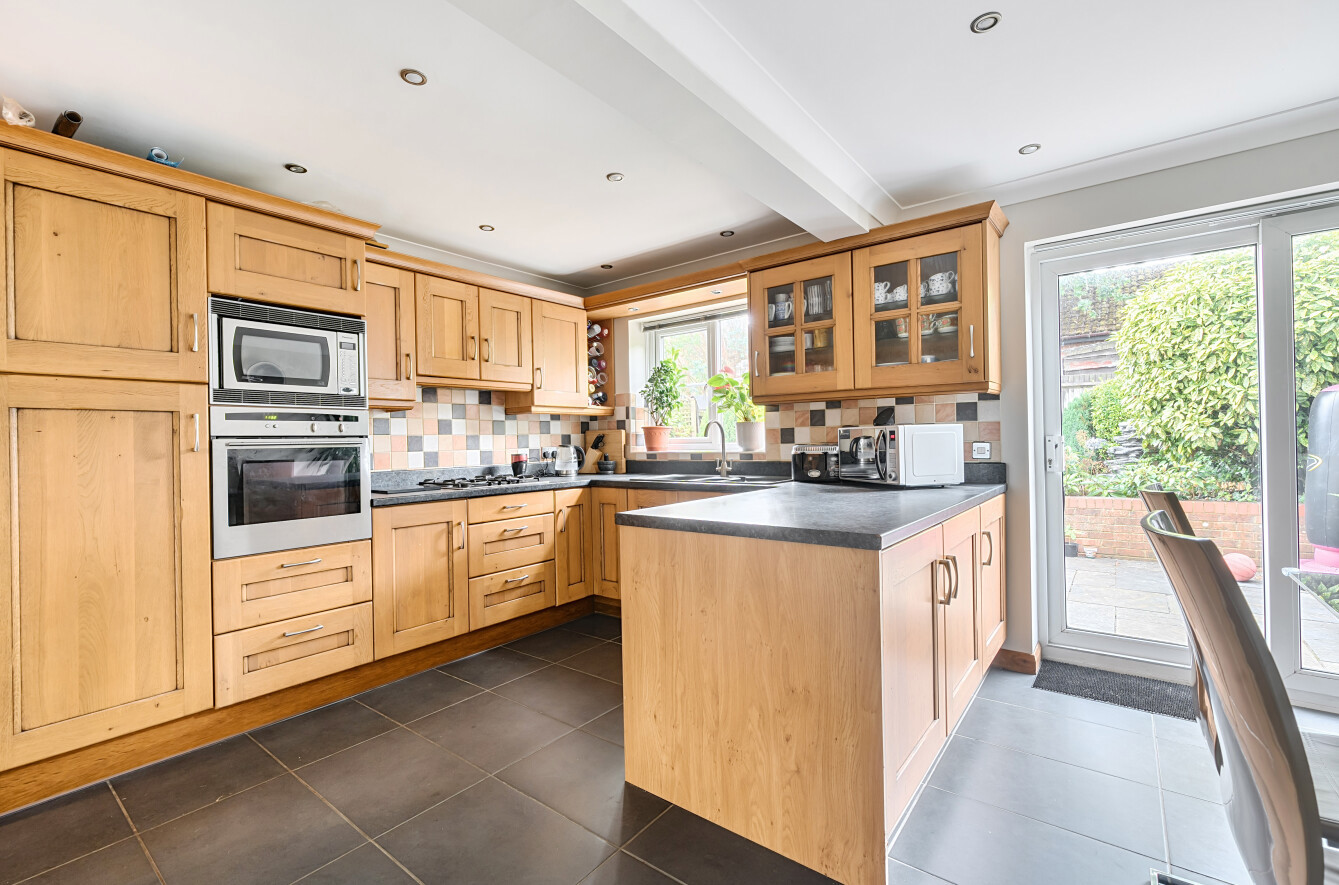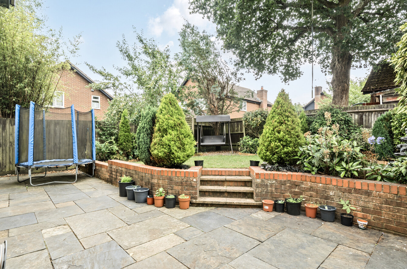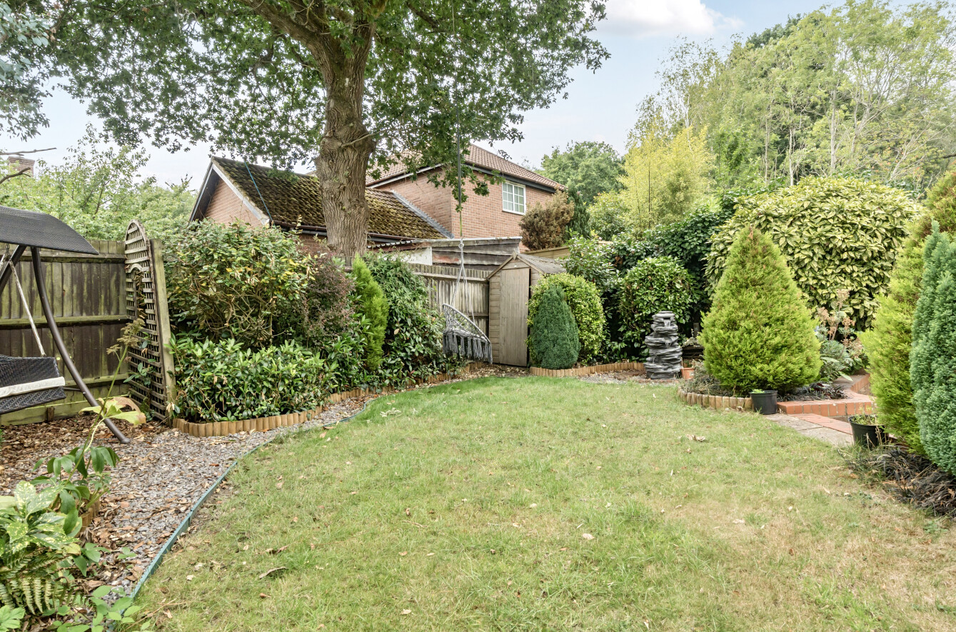 Externally, the property enjoys a private driveway with off-road parking for two vehicles, a garage, and a well-maintained front garden. A side pathway leads to the landscaped rear garden, which offers a combination of patio area and lawn, enclosed with mature and well stocked borders, offering a peaceful and private outdoor retreat.