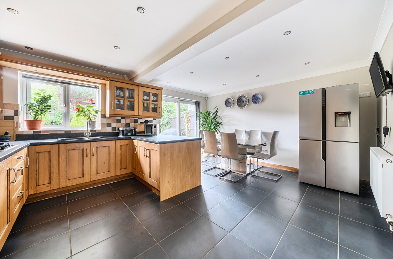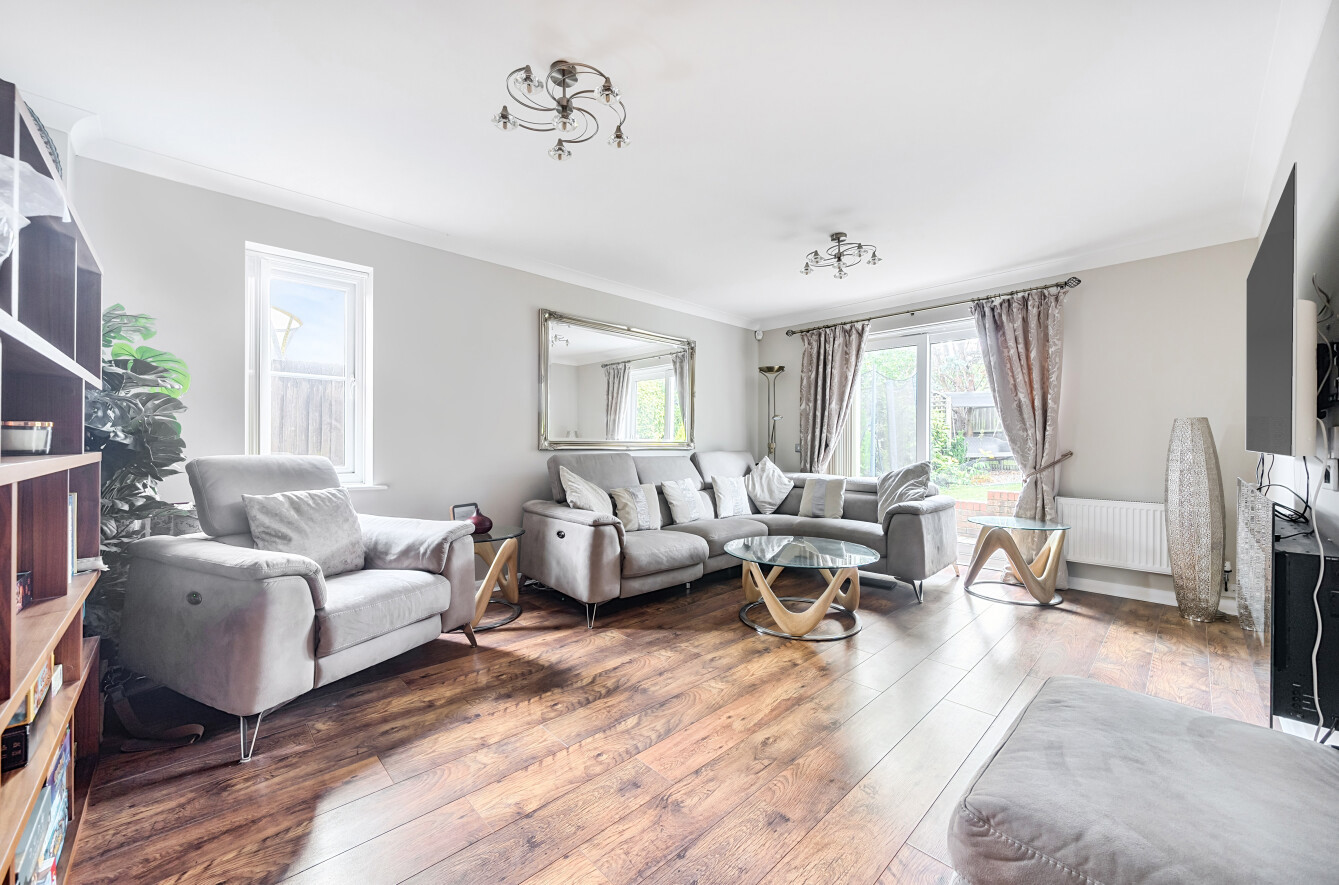 Situated in a desirable residential area, the property welcomes you with a spacious entrance hallway providing access to a cloakroom, a flexible family room, a large sitting room, and an impressive kitchen/dining area. The family room is ideal as a cosy snug, children's playroom, or a dedicated home office, offering excellent flexibility to suit your lifestyle. The sitting room is bright and airy, featuring sliding doors that open onto the rear garden, creating a seamless connection between indoor and outdoor living. At the heart of the home is the stylish kitchen/dining room—a fantastic space for both family meals and entertaining. This room also benefits from sliding doors leading out to a south-west facing patio, perfect for al fresco dining or enjoying the sunshine.