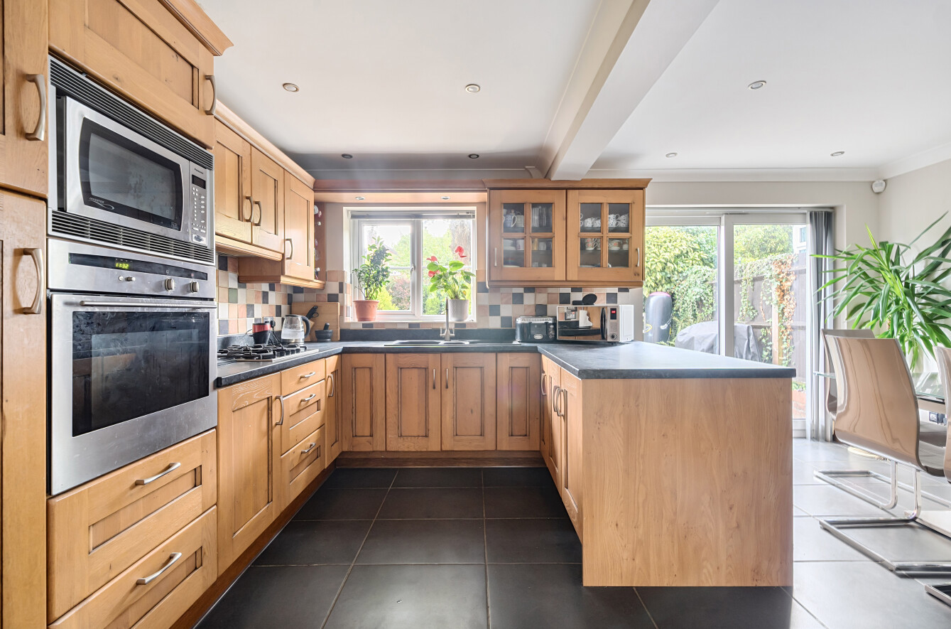 Upstairs, the property offers five well-proportioned bedrooms and a contemporary family bathroom. Both the master bedroom and second bedroom boast en-suite shower rooms, providing privacy and convenience for family members or guests.
